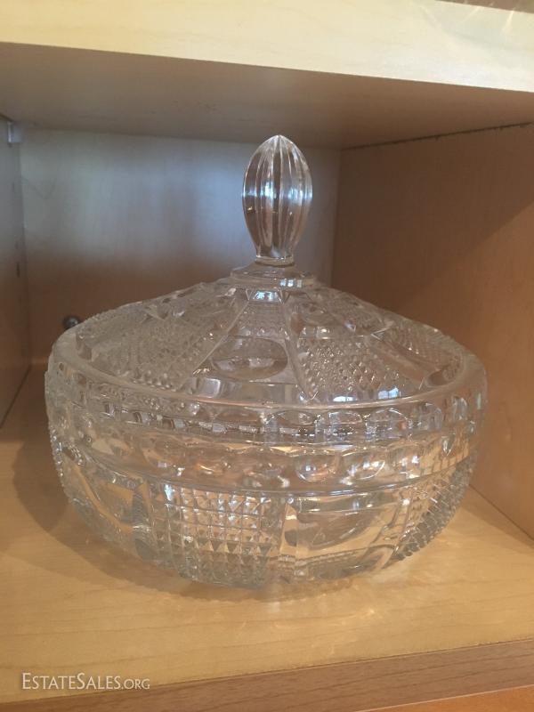 17 pieces of crystal . Includes Bowls, Ice Buckets and Covered Dishes. Also including tongs, lids and stoppers.