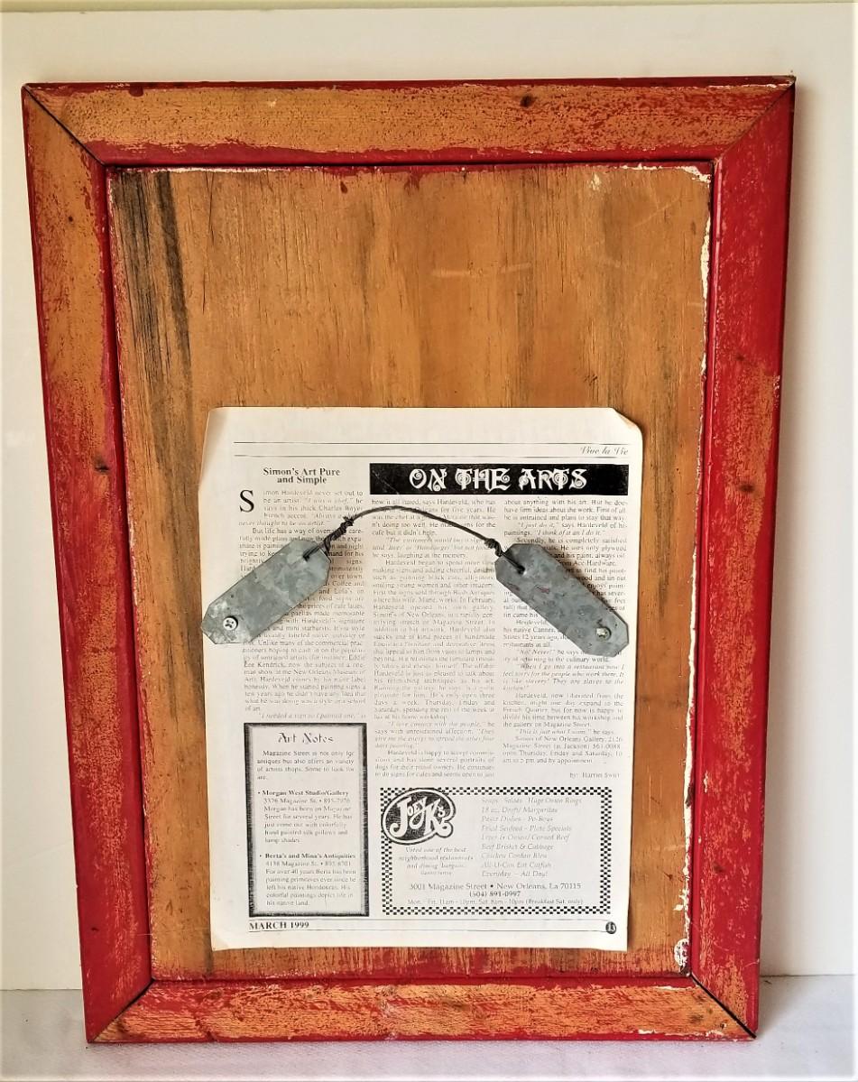 Original painting on board by Simon of New Orleans, done in 2000 - "Please God, Don't sue me." Information on reverse. Good condition. Measures 14" x 19".
