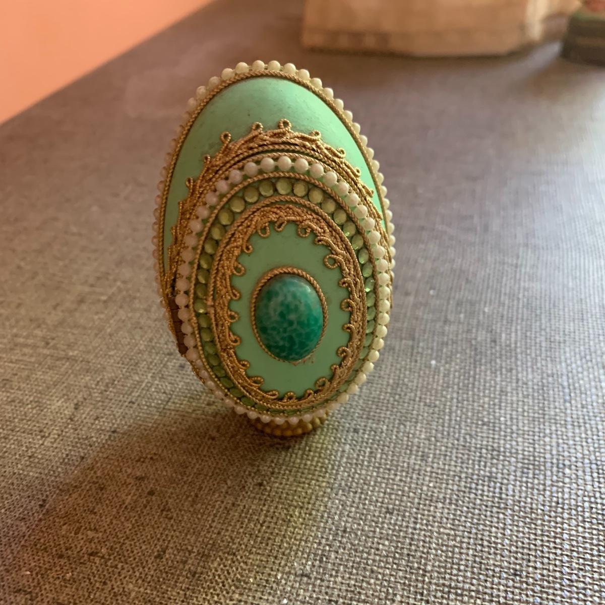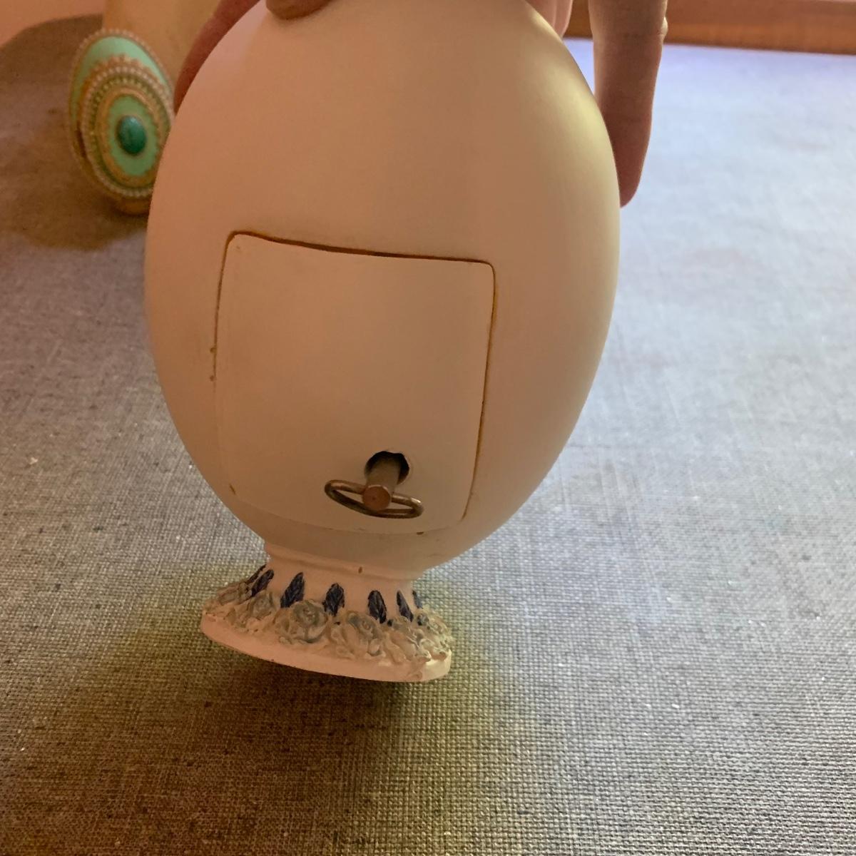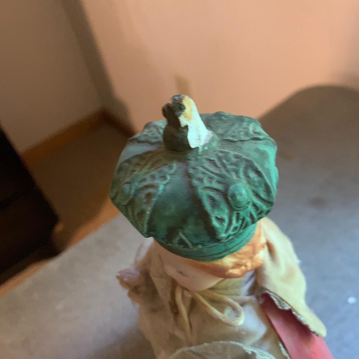 Lot contains interesting religious pieces likely from travels. The two ceramic alter boys appear to be vintage at least and small green egg as well. All three are a bit weathered but in decent condition overall. The wood burnings are sweet depictions with the longest one measuring 13” x 3.5”. Two Pope mementos and a music box that plays Silent Night are included and more. One altar boy has chip on top, see pictures.