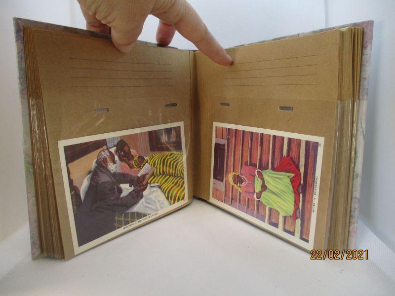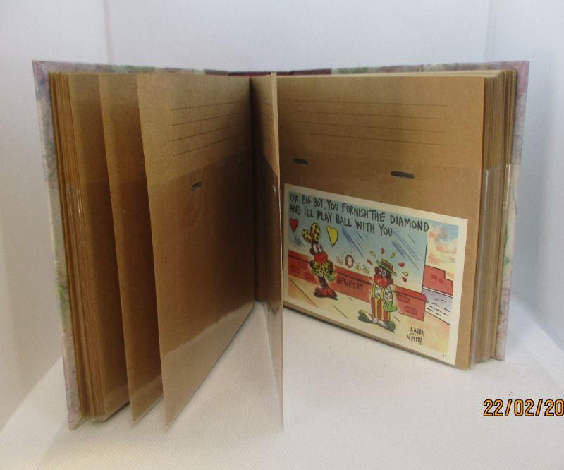 There are about 20 post cards in here (one is duplicated a few times). The book is great for sliding in a post card and then writing notes above it to document it. All are in very good condition. I didn't look at all of the post cards, but the ones that I did check out hadn't been used.