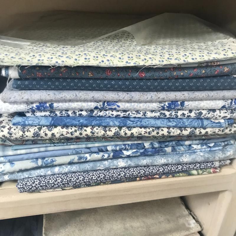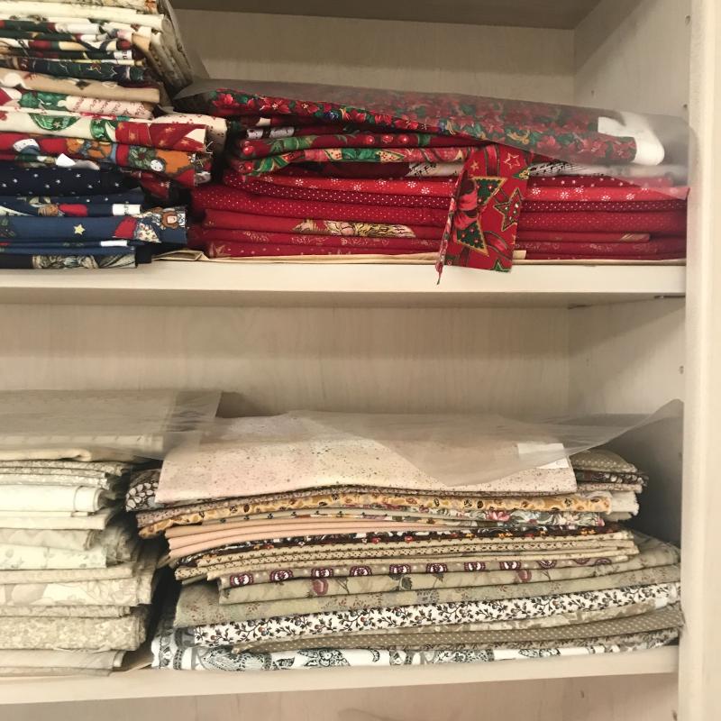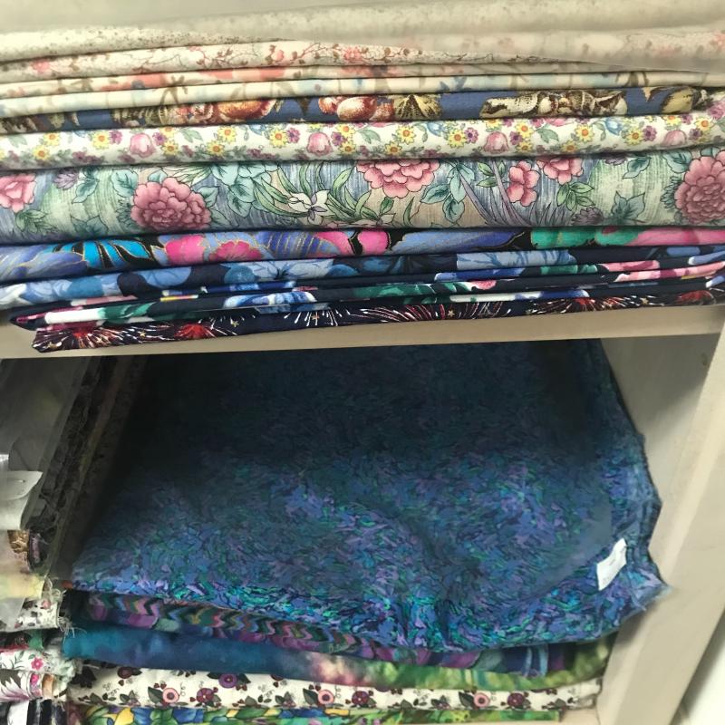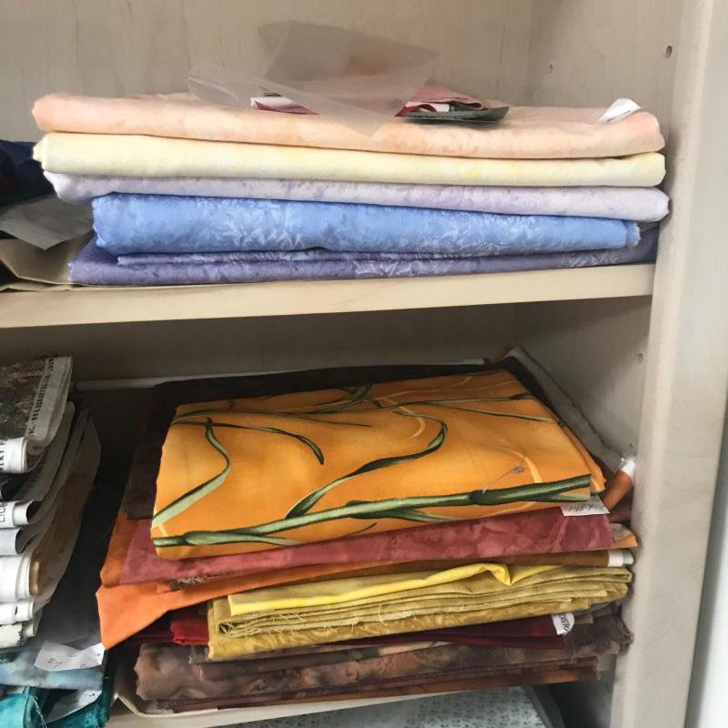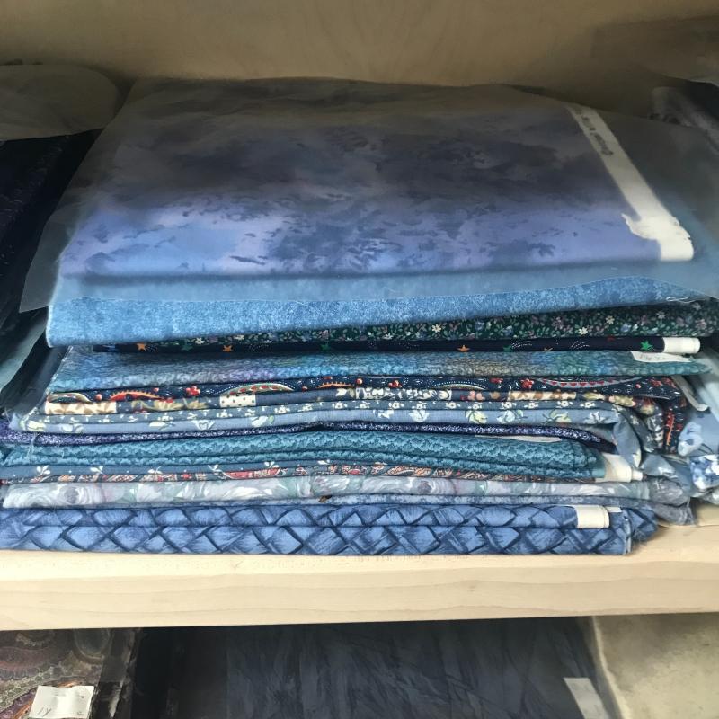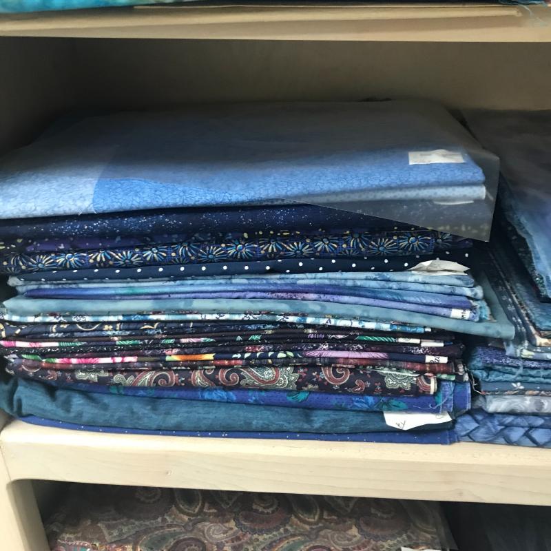 Large lot of quilting fabric mostly one yard or more per fabric. See pictures for colors and details. We encourage you to come to the preview to see the fabrics in person. Shelf not included. Shipping available.