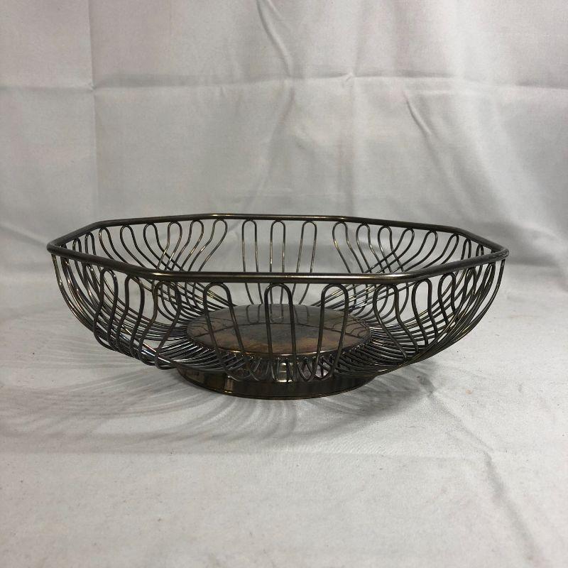 Elegant octagon shaped bowl/basket that was made in Hong Kong and is in excellent condition. Even tarnished, it is very pretty. It is about 9.5" wide.