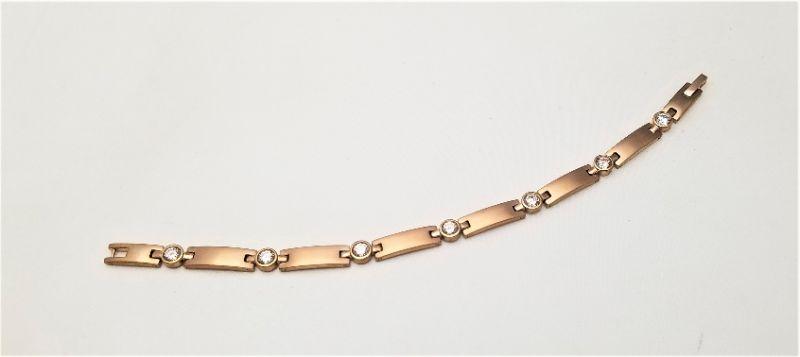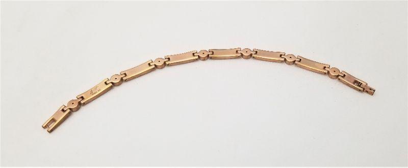 Speidel brand stainless steel bracelet with Rose gold coloring - set with CZs. 7.5 inches long. Good condition.