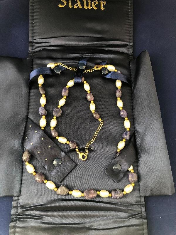 Lot 19 Stauer Necklace & Bracelet in case Purple Amethyst/Pearl
