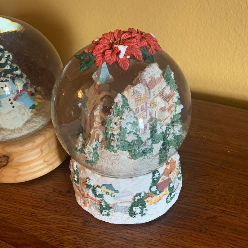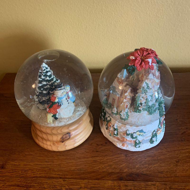 TWO MUSICAL SNOW GLOBES H 8"