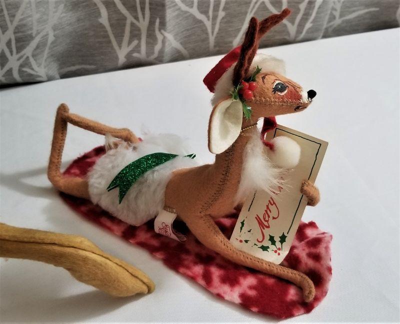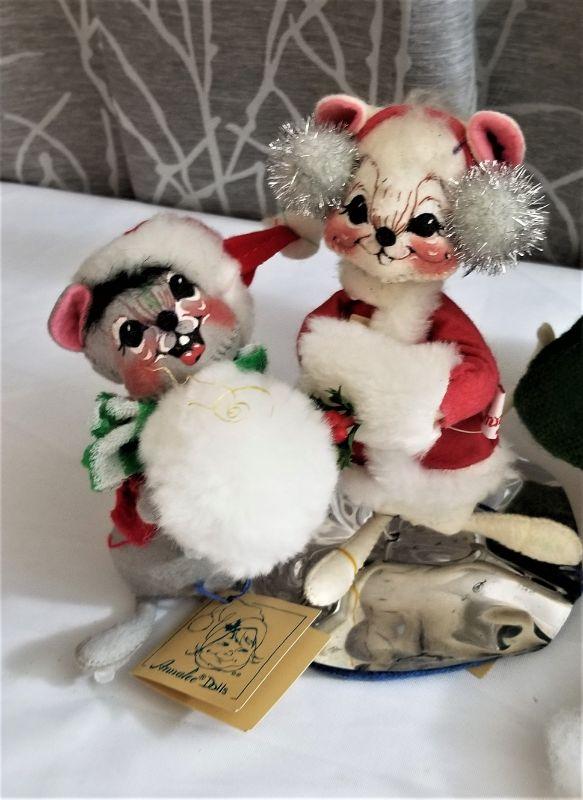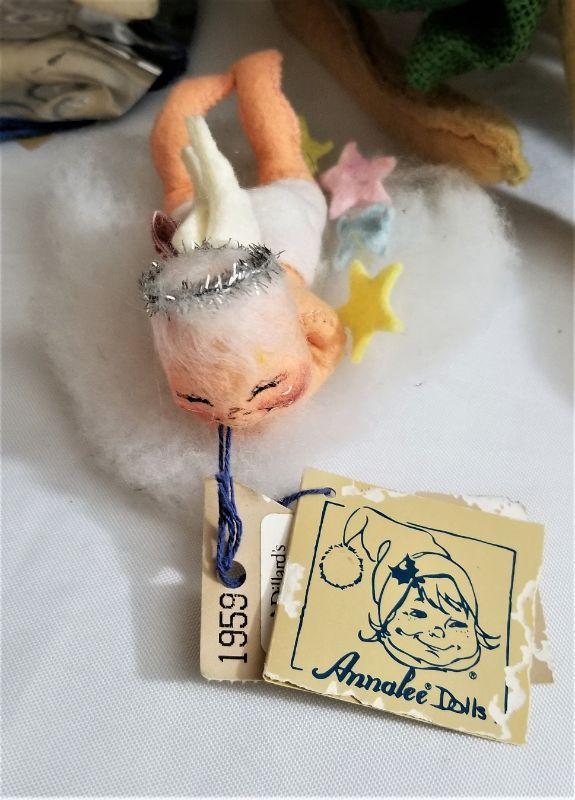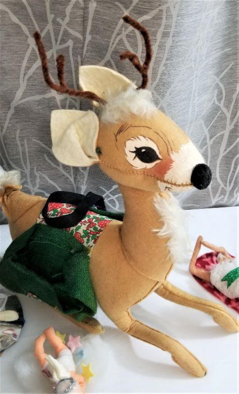 Cute Vintage Annalee Christmas lot - large and small reindeer, two Christmas mice, and a baby angel on a cloud. You get everything you see here. Reindeer is 15" tall, tallest mouse 8" tall. Some pieces still have tags, but they all have been used.