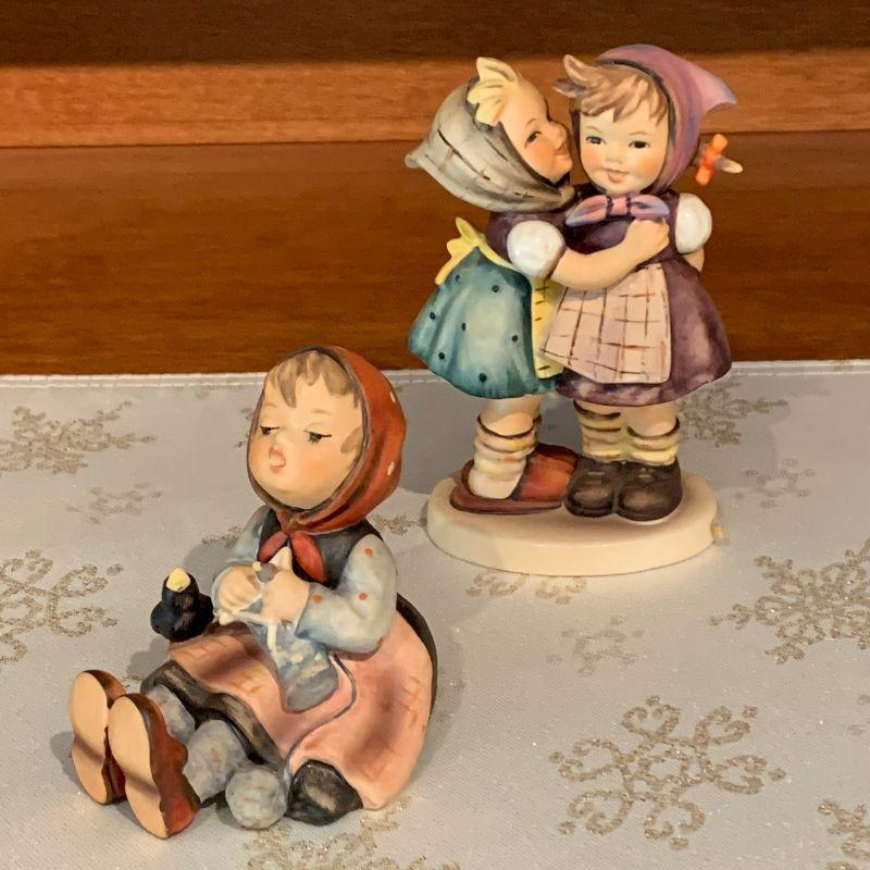 Telling Her Secret and Happy Pastime. 2 Goebal Hummel figurines. Made in W. Germany No chips or cracks