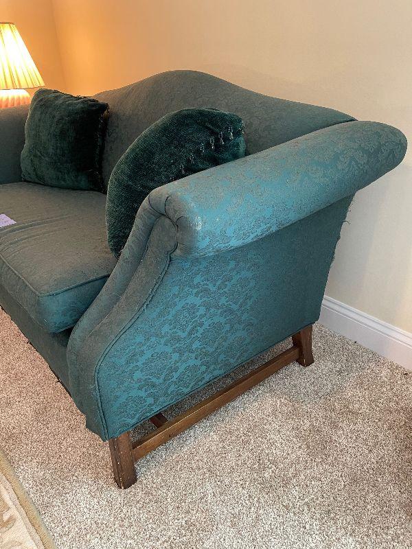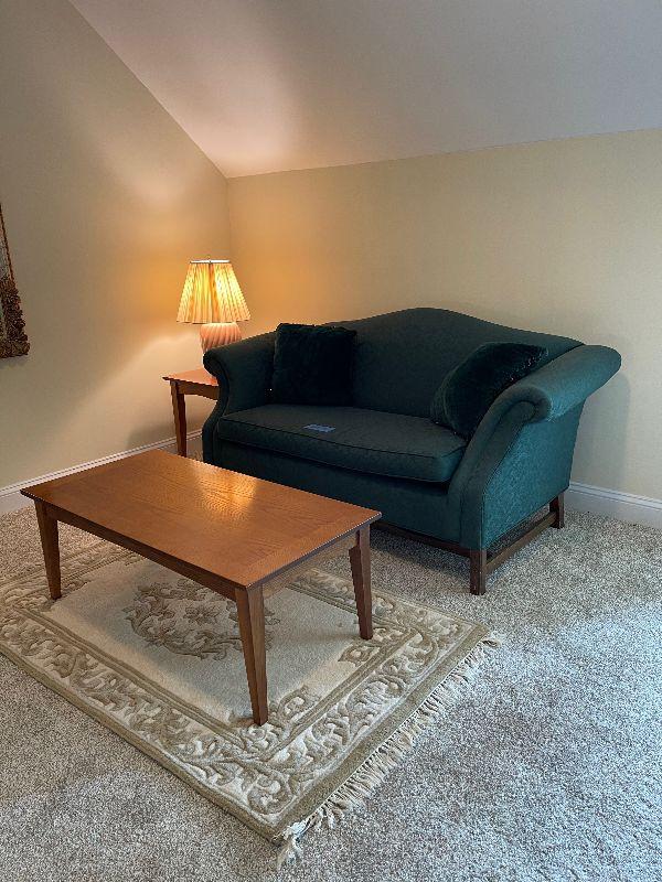 Vintage Green Sofa, Matching Coffee & End Tables, Lamp and Rug