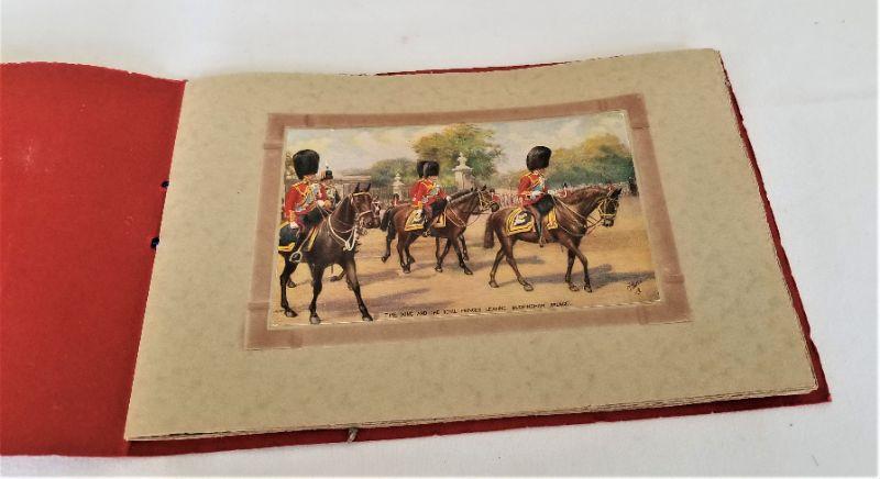 From the reign of England's George V (Elizabeth II's grandfather) is this neat Trooping the Color book in the original box. Color illustrations, good condition. If you like royalty stuff, you'll like this. Box measures 10" by 7".