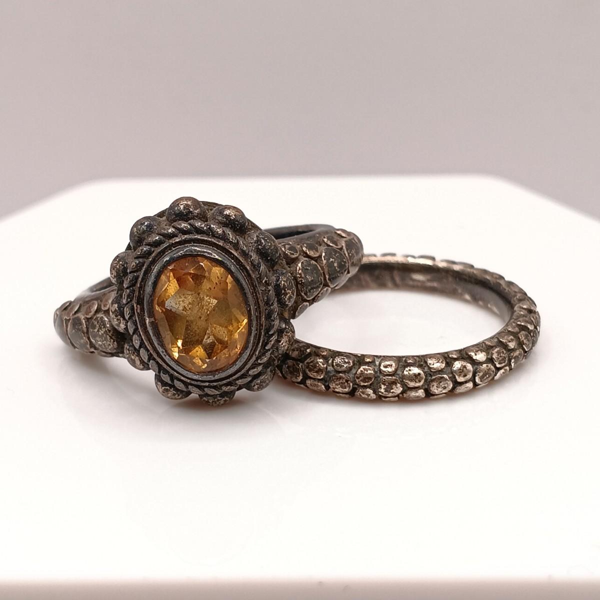 LOT 190: Sterling 925 BA and Citrine Indonesia Ring w/ 925 Michael Dawkins Thailand Sterling Band