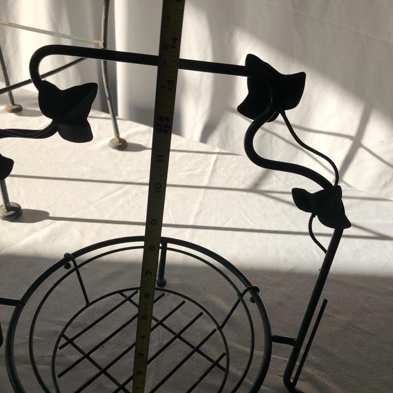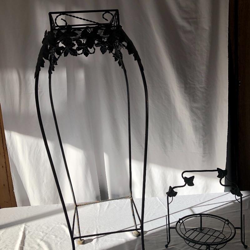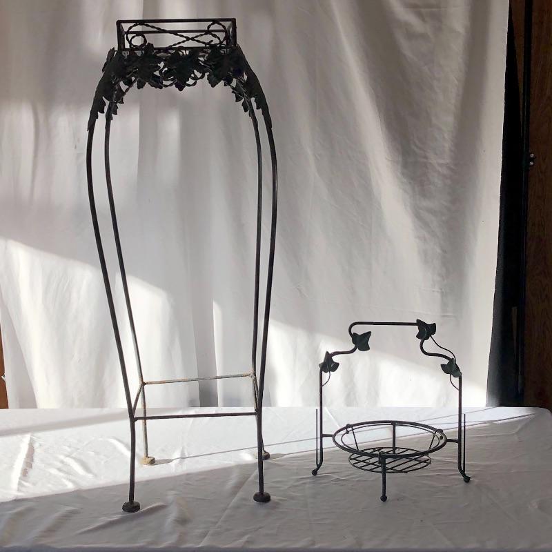 This lot includes two plant stands. The taller stand is approximately 38” x 14”. Both are iron. Local pick up only.