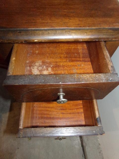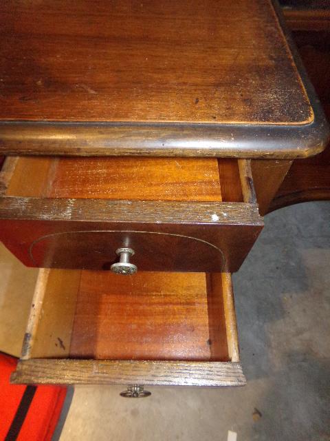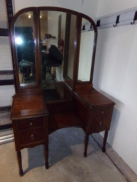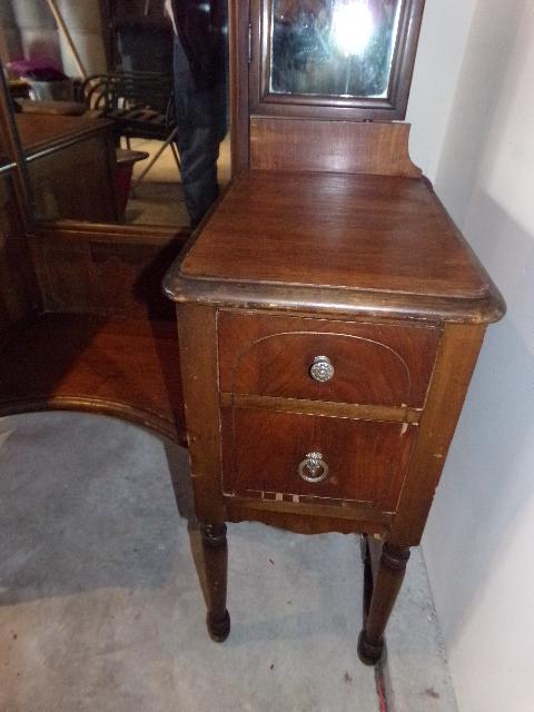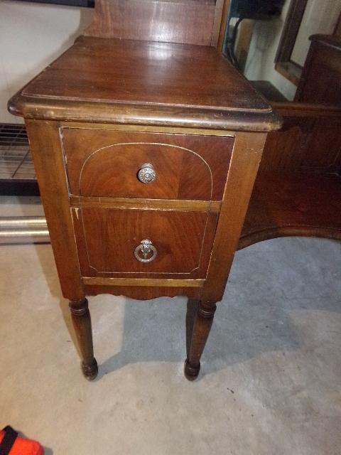 ANTIQUE VANITY WITH MIRROR, HAS A FEW CHIPS AT THE BOTTOM