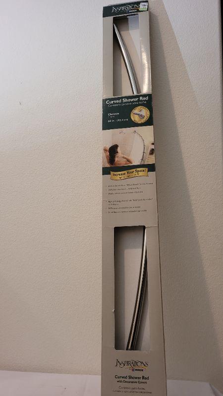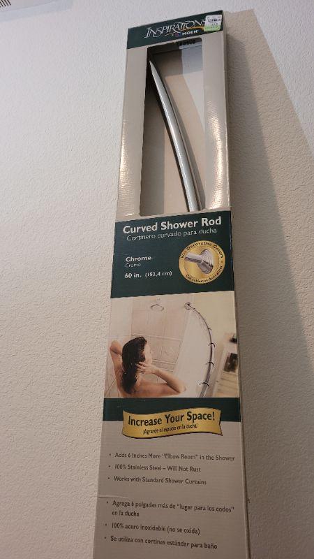 Lot 190: New MOEN 60" Silver Tone Curved Shower Rod