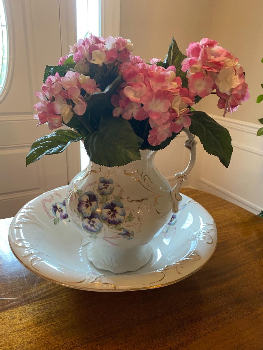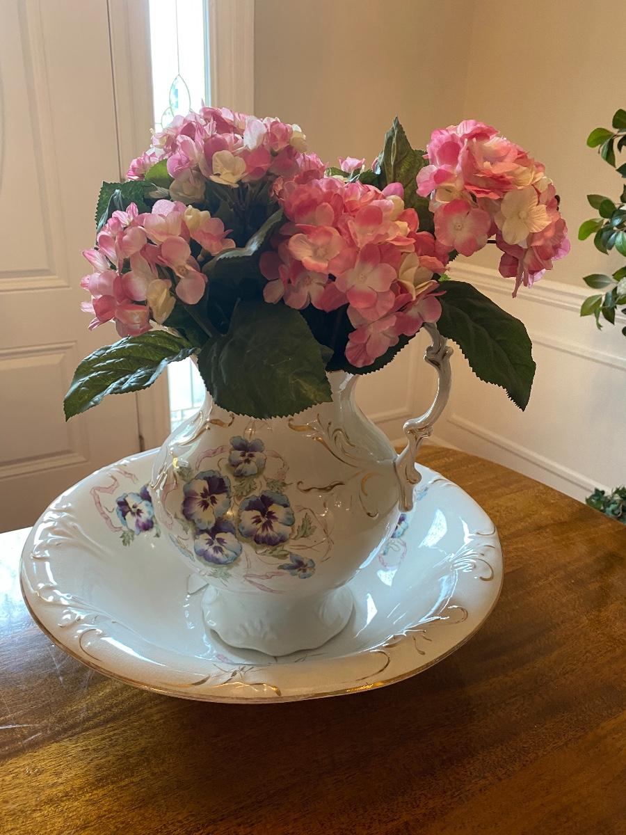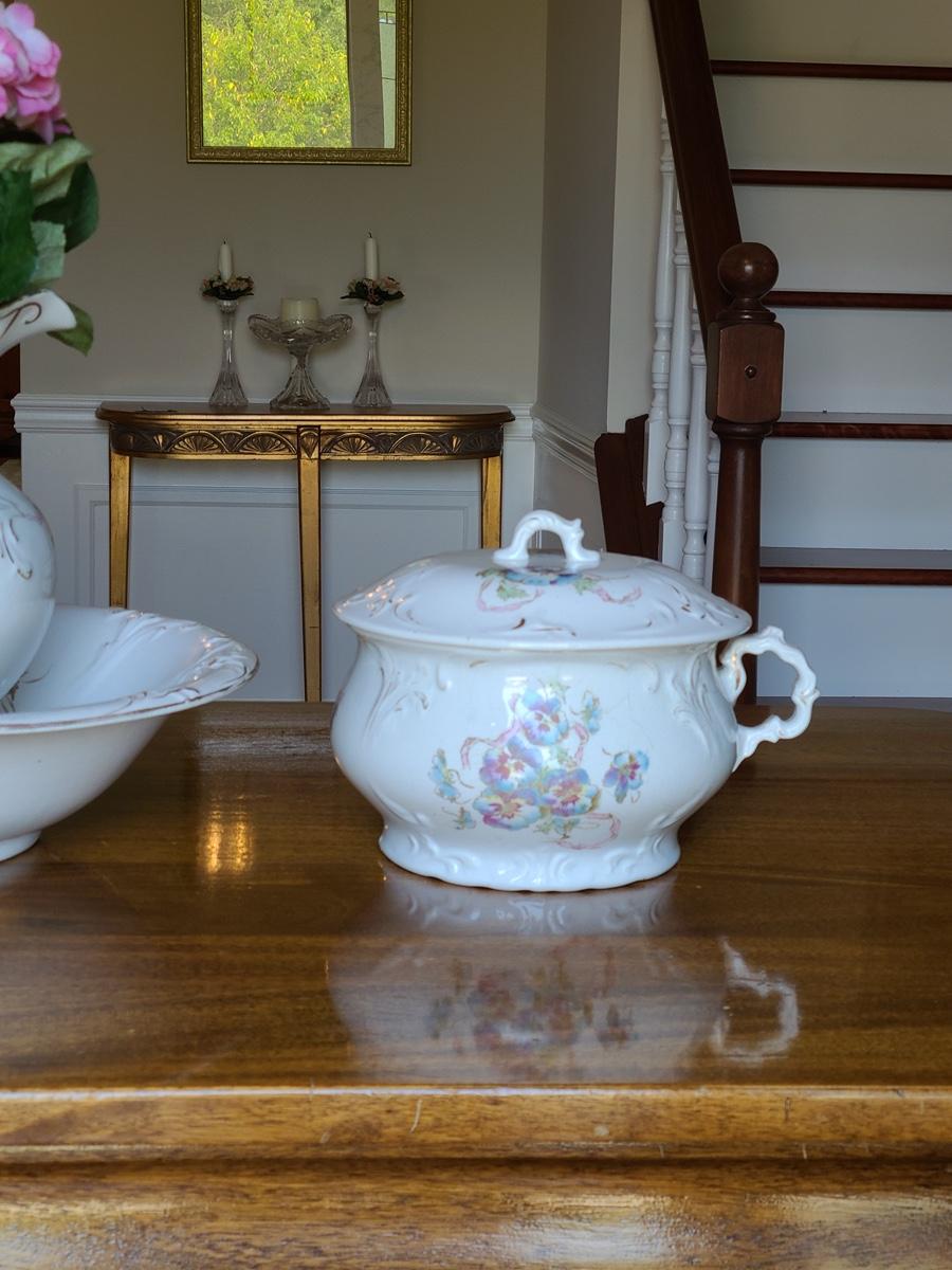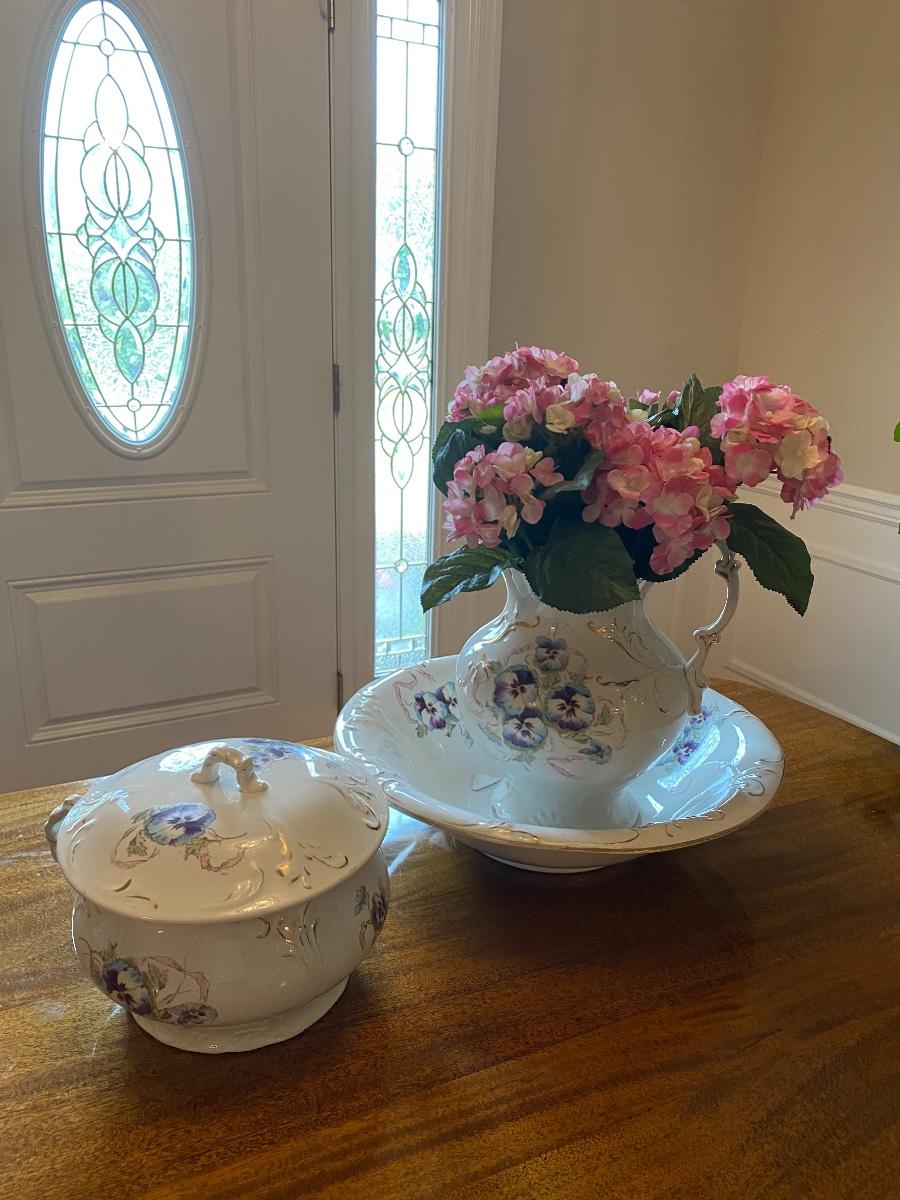 This set was used as an accent in the home and it is gorgeous. Due to age there are some condition issues including a break in the handle that has been repaired. Still lovely and functional. Please see all pictures as they are the best representation of the items in the lot, the condition of the lot, and will show measurements if taken. If purchasing furniture you must be able to move yourself with your own help, and truck. This is located on the first floor.