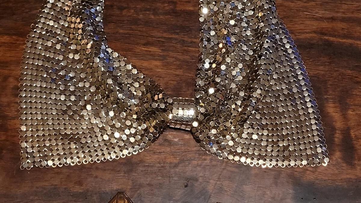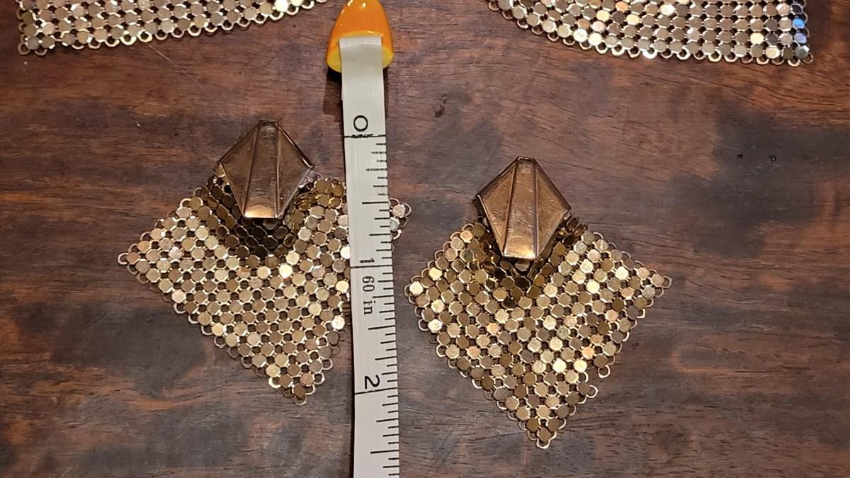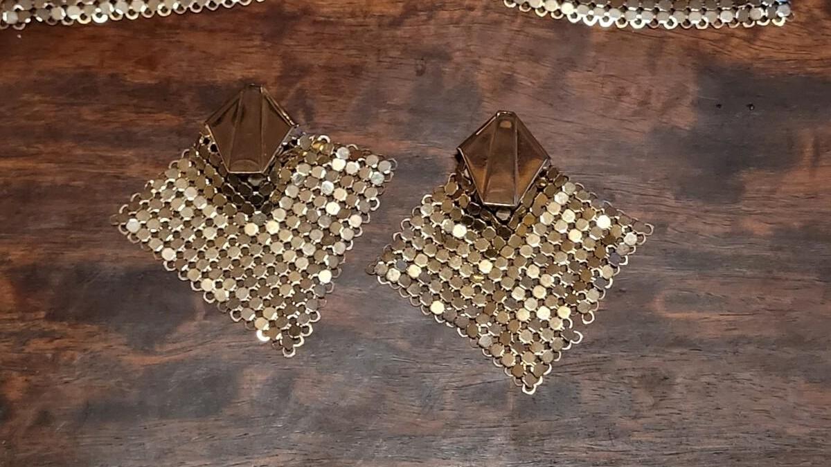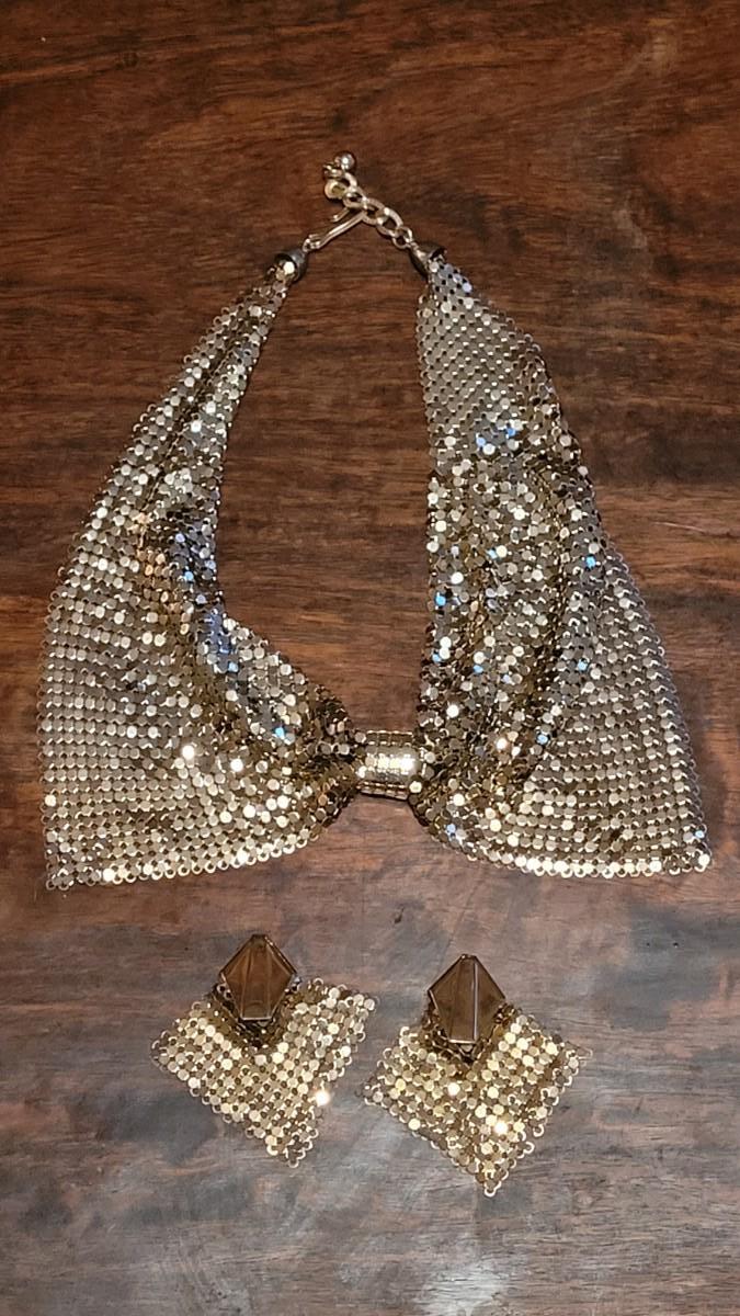 Lot 190: Vintage Gold Mesh Earrings and Collar Necklace