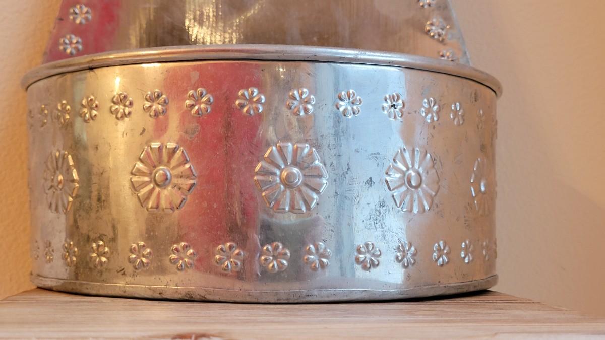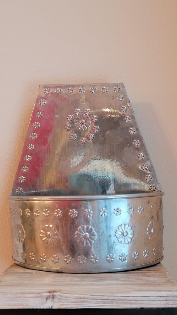Lot 190: Mexican Folk Art Stamped Tin Wall Pocket