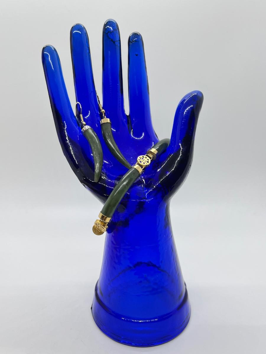 LOT 190: Vintage Faux Jade Earrings + 7" Bracelet