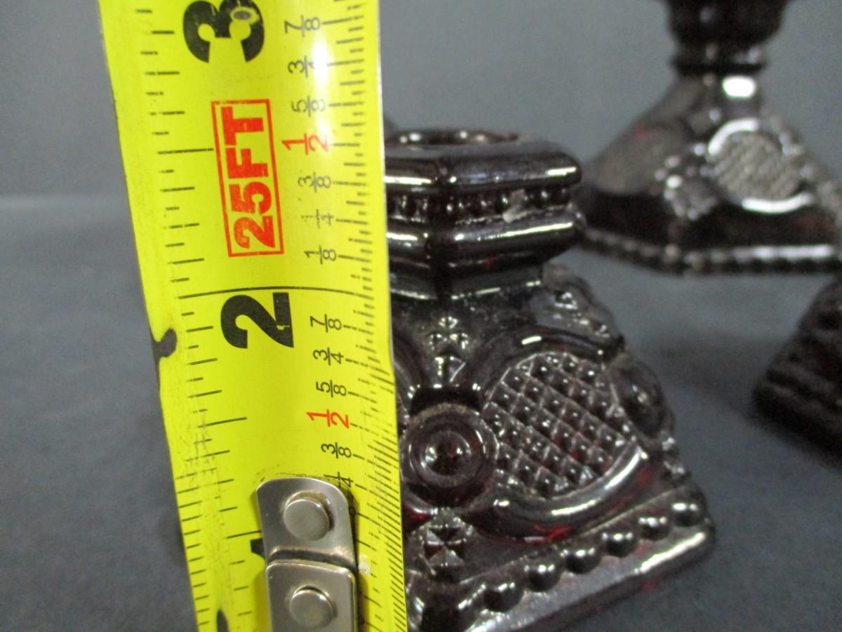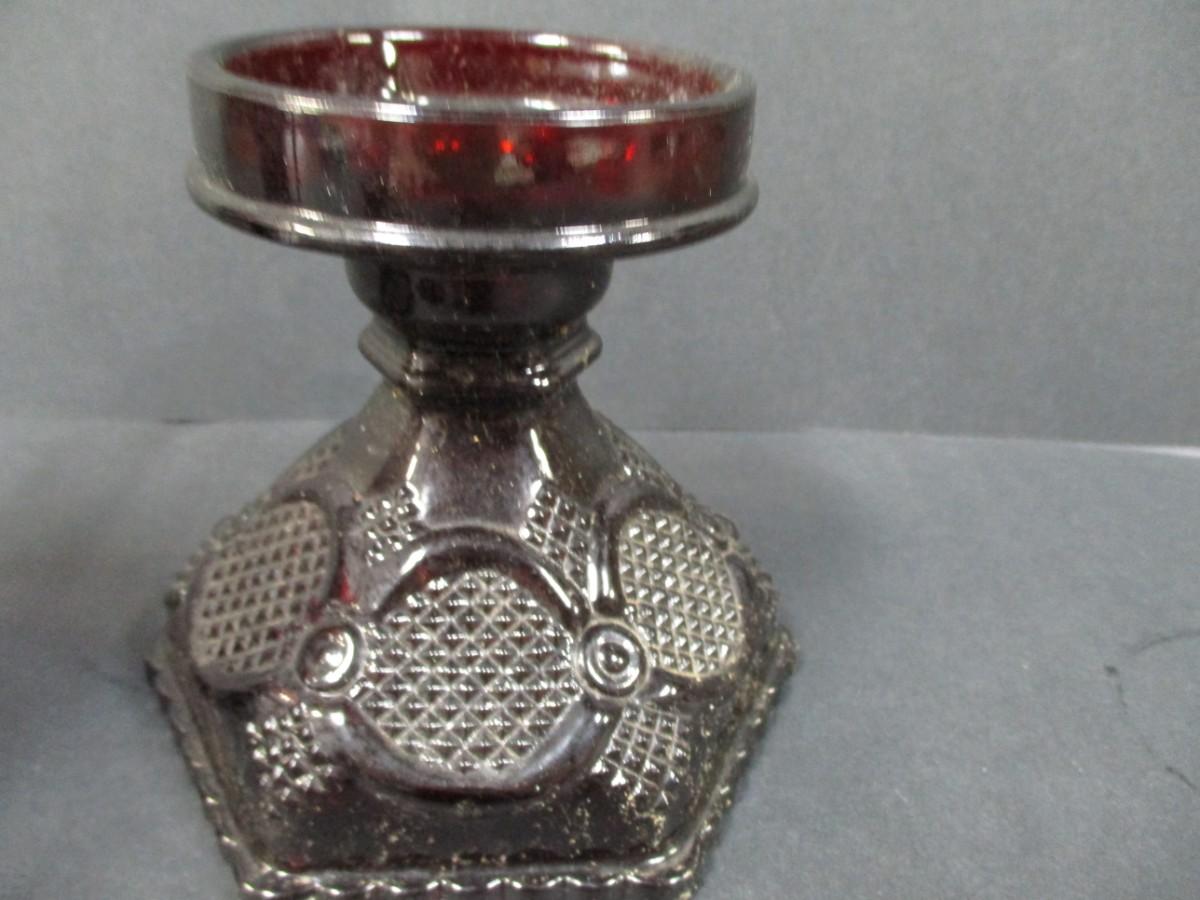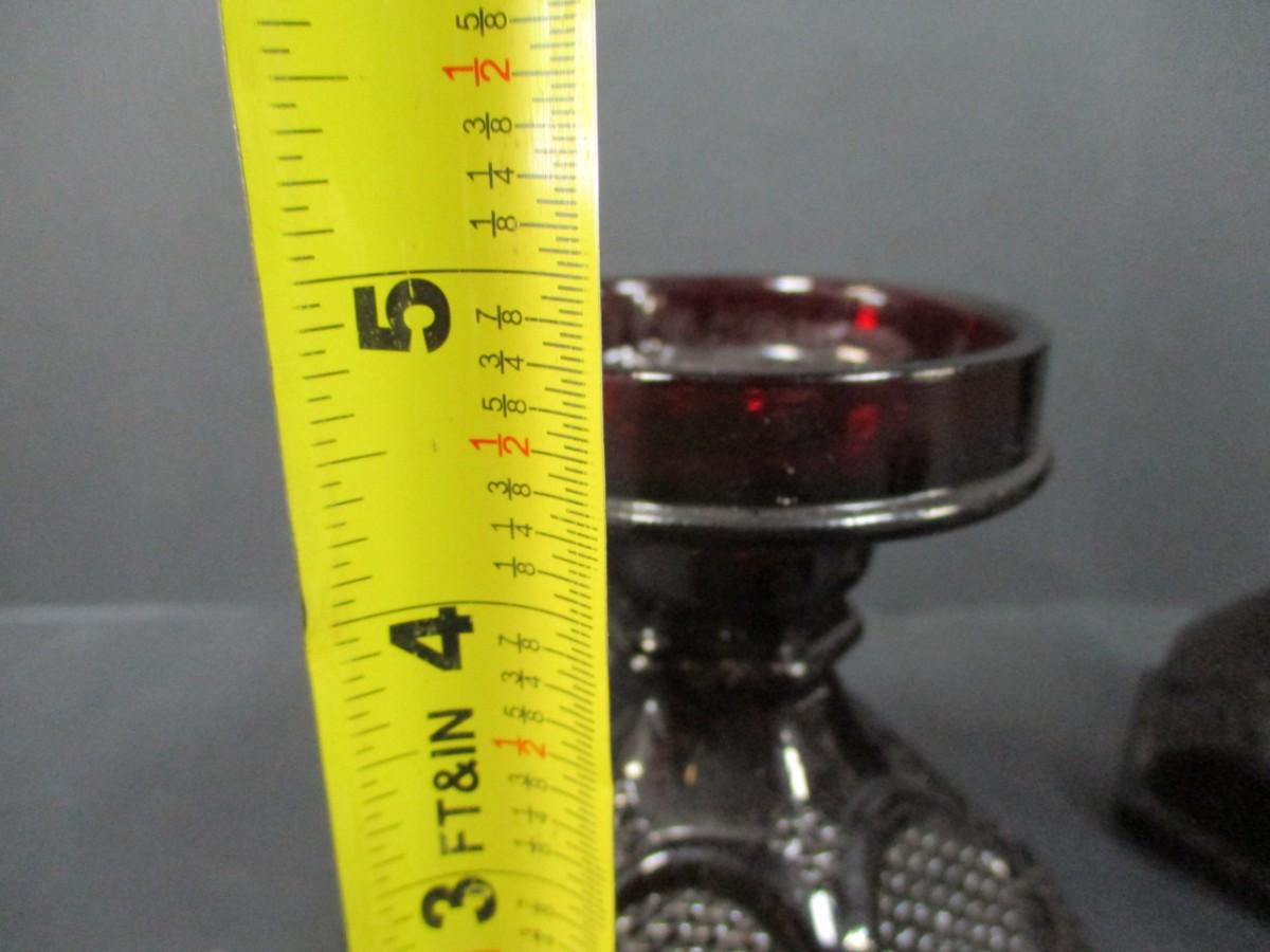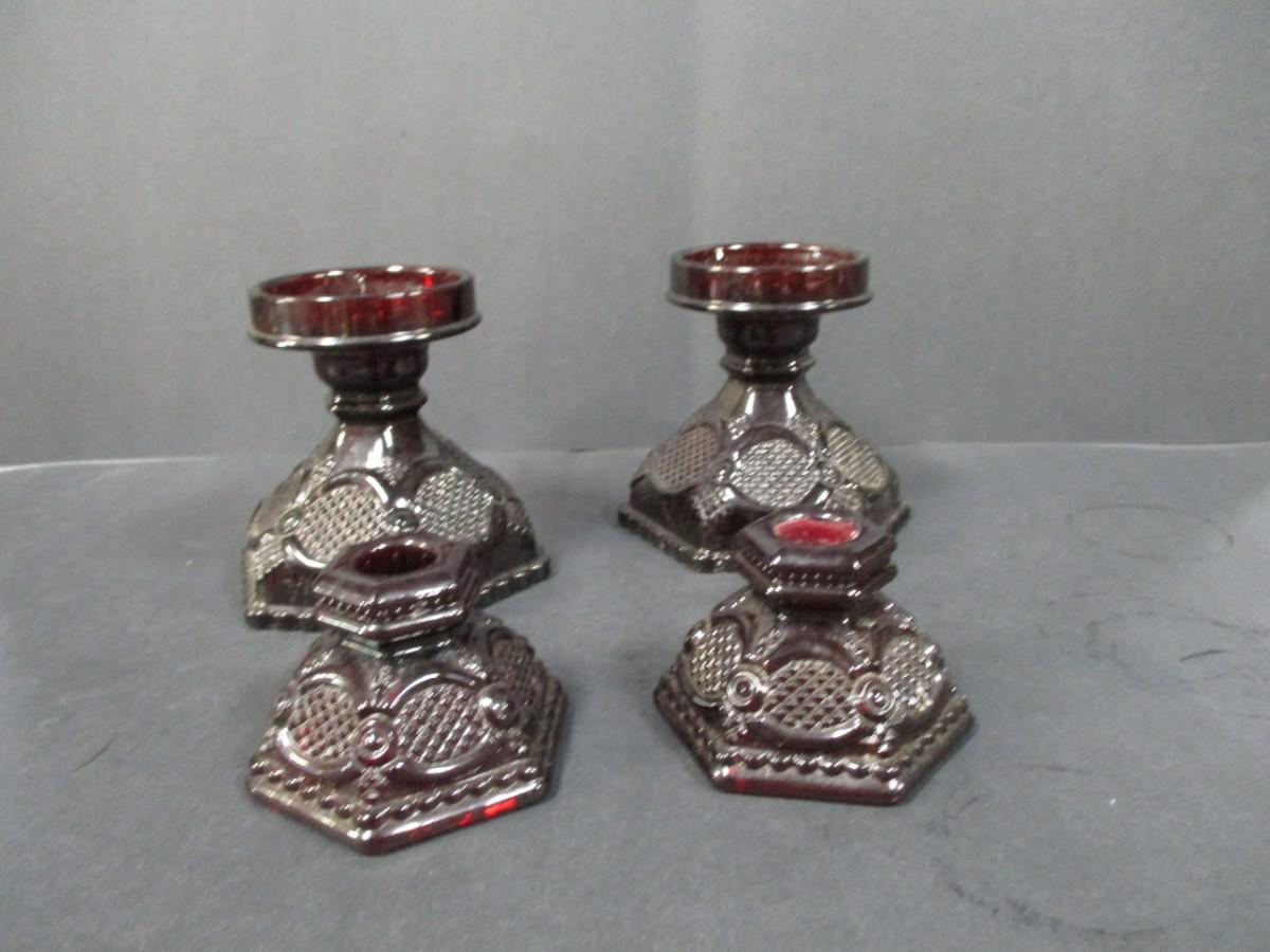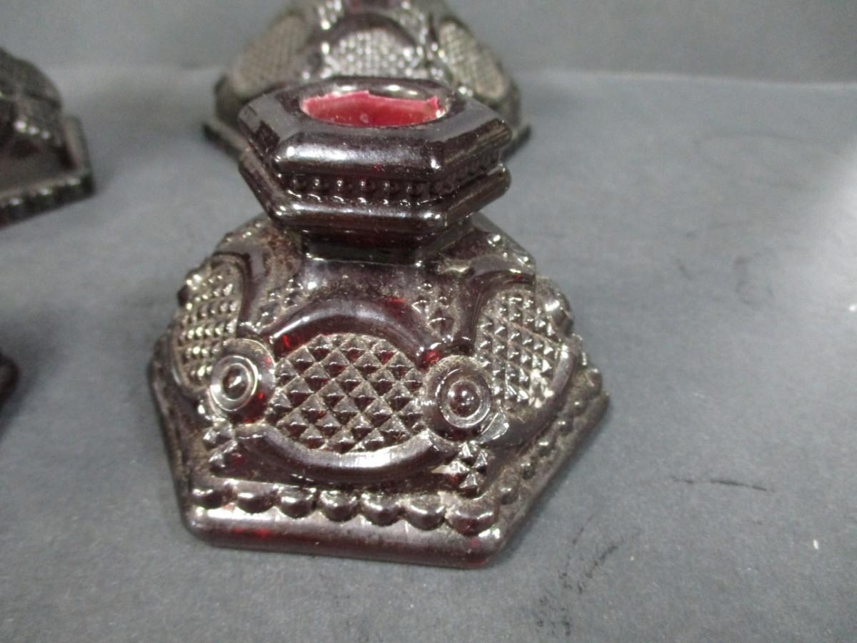 Lot 190 - Cape Cod Ruby Red Avon Candle Holders & Hurricane Lamp Holders