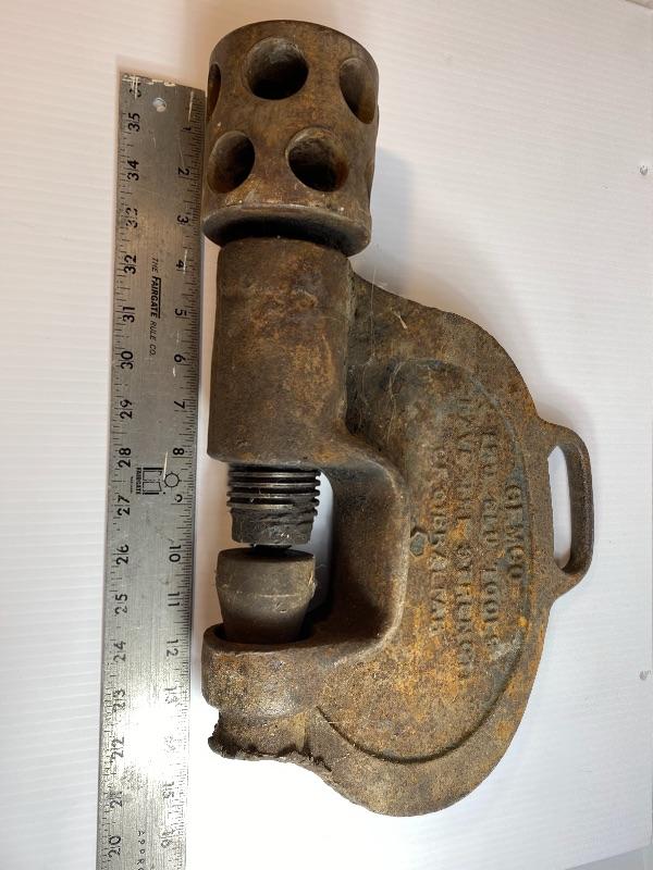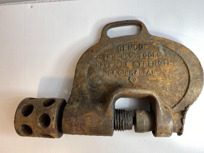 This tool was manufacturing in the 1930s or 40s in St Louis, Mo by the Gibraltar Equipment and Manufacturing Co. later known as GEMCO. They had a plant in ILL. as well. This was referred to as a “ super punch” in the “Tru Blu” line of tools. It was a punch for 20lb to 40lb rail.