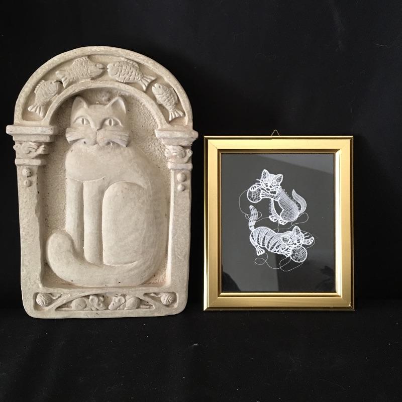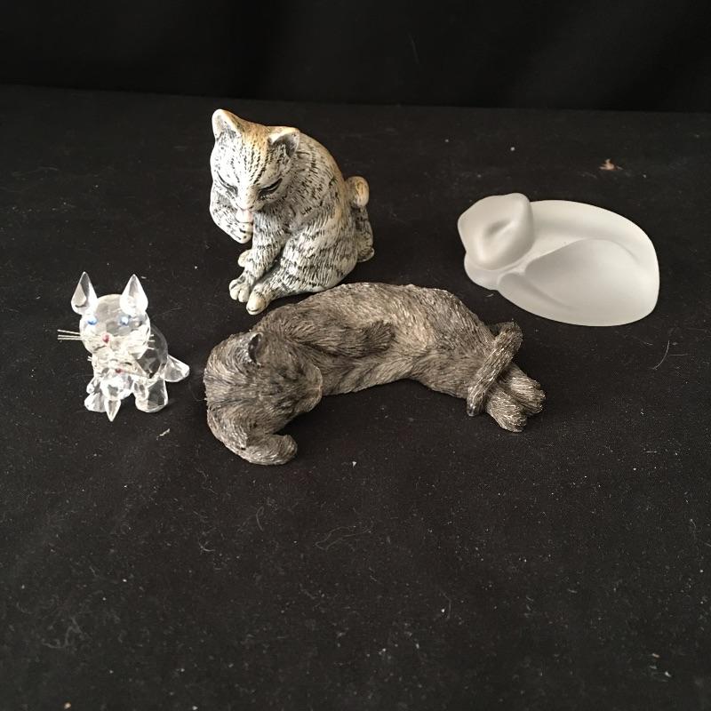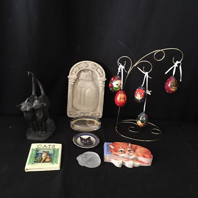 Lot 190 - Paul Jenkins Statue and Cat Lovers Items