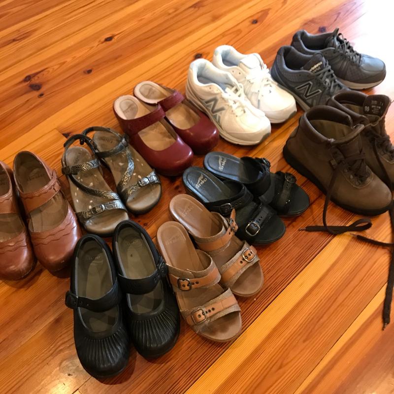 Like new sets of Dansko Shoes in size 37 or 38. Barely used. Also includes a pair of Taos shoes and Vasque hiking boots and two New Balance Sneakers in size 7 in excellent condition. Also includes adjustable shoe rack. Shipping or local pick up in Asheville