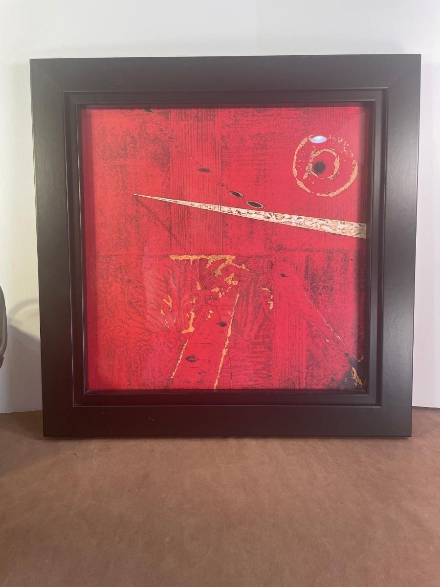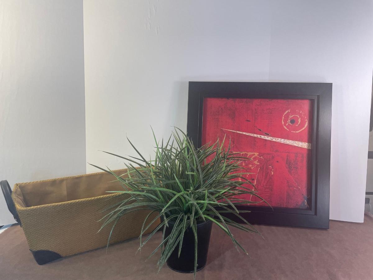 Lot 190. Framed Art, Silk Plant & Burlap Basket
