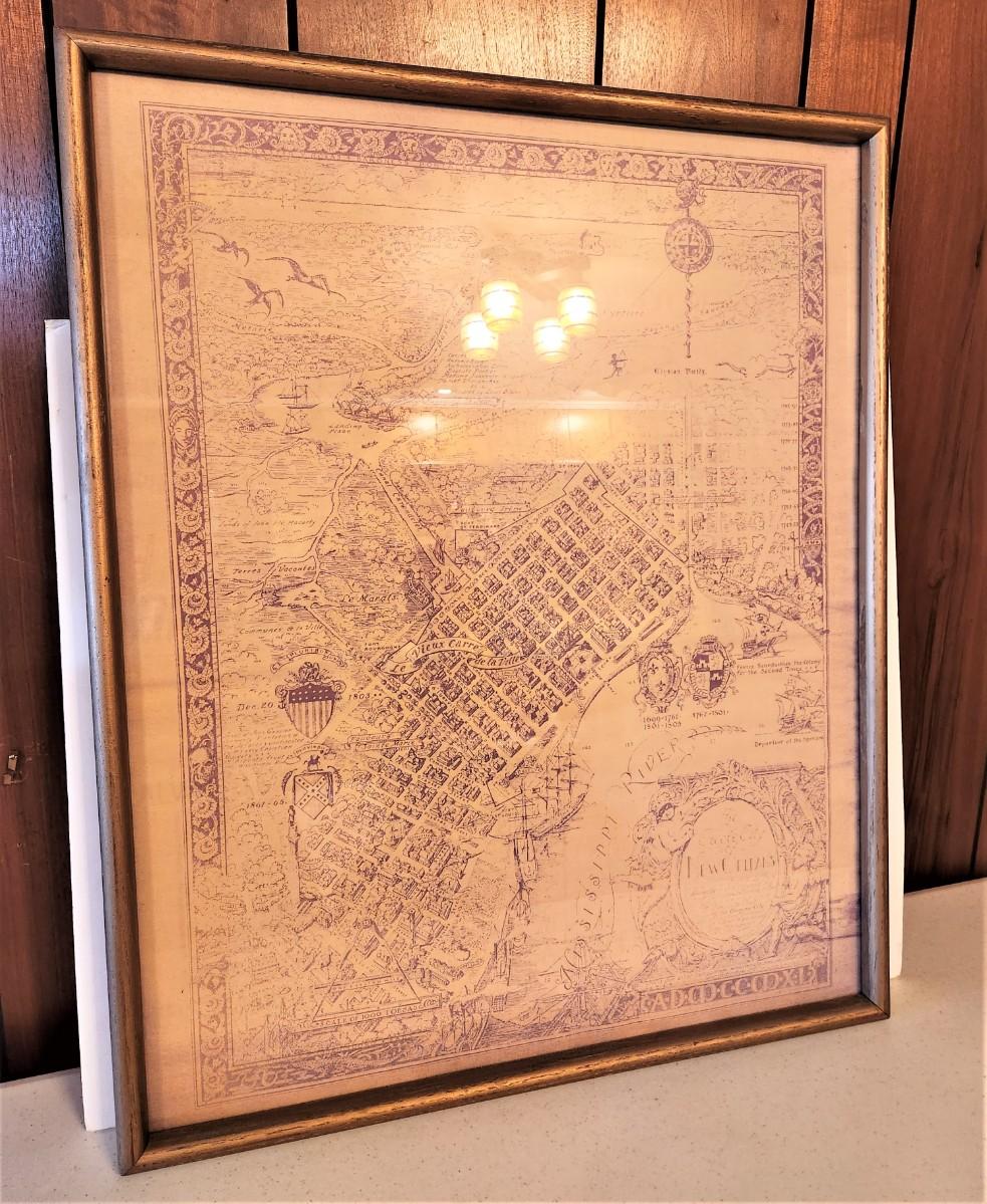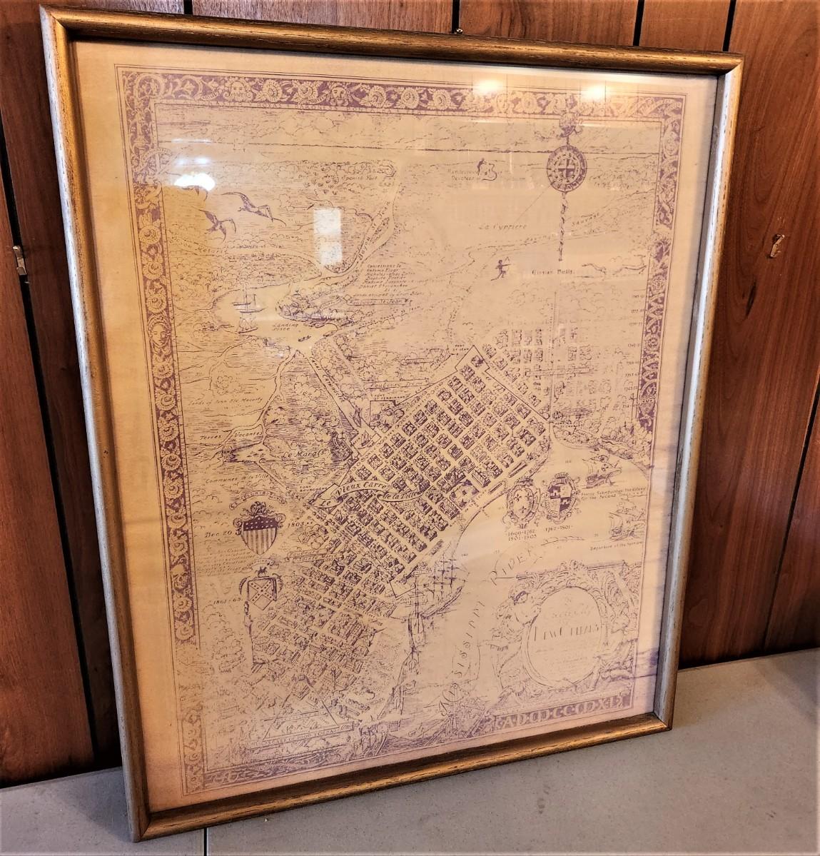 Lot #190  Framed Vintage Print - Map of Colonial New Orleans Vieux Carre