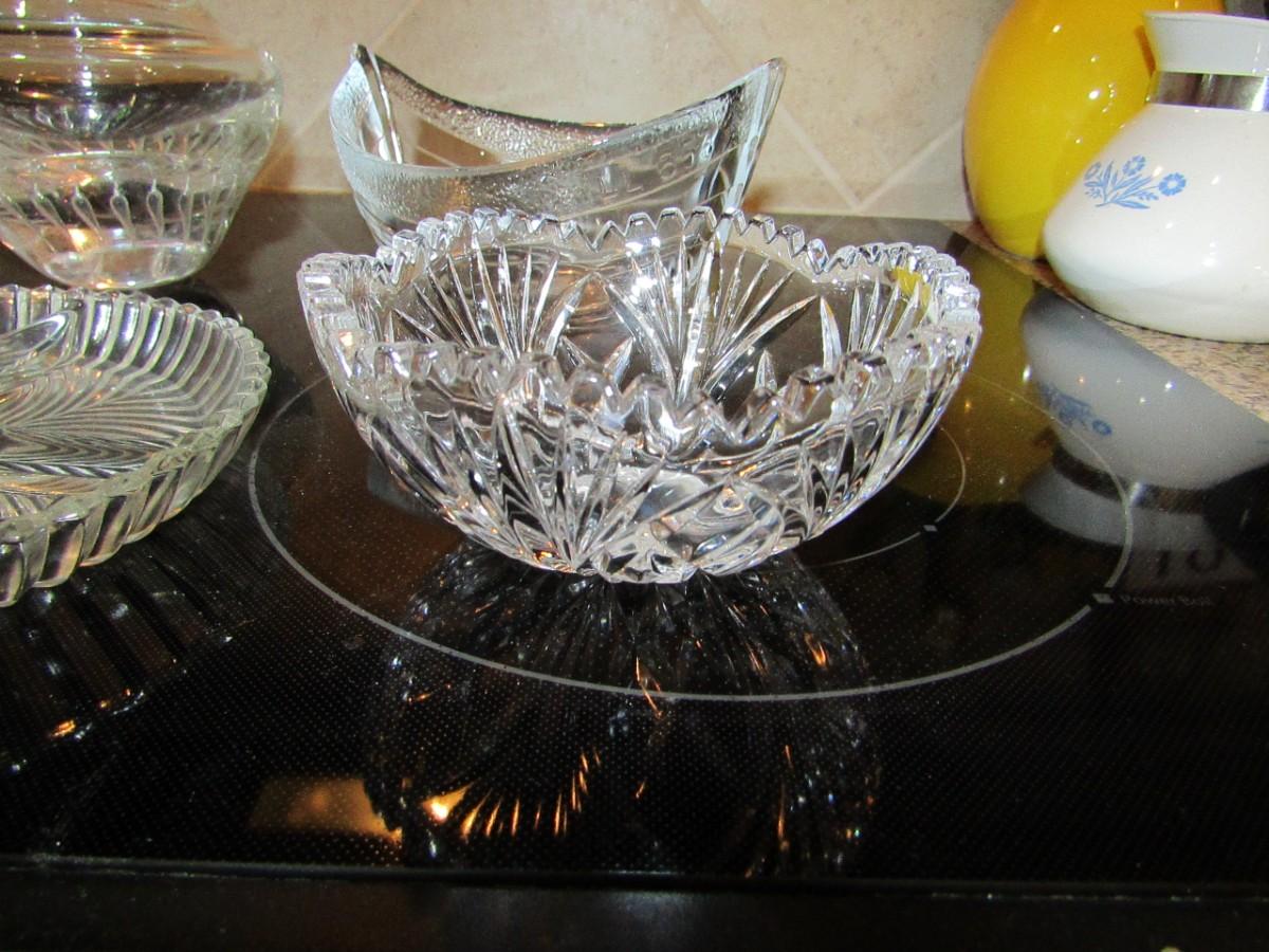LOT 190 GLASS AND CRYSTAL SIDE SERVING DISHES
