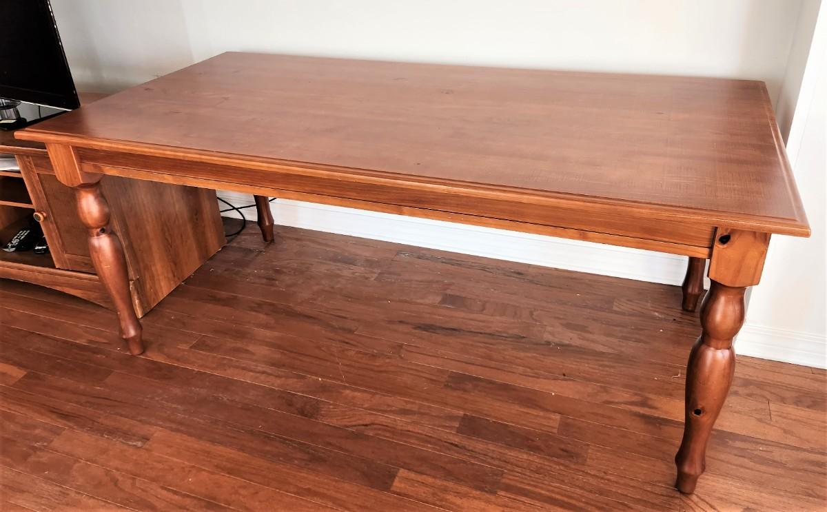 Solid Contemporary Pine Library/Dining Table from PIER ONE. 3 feet deep, 6 feet across, 30" tall - great condition.
