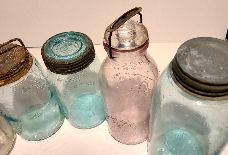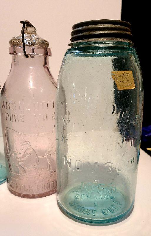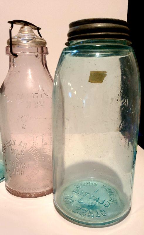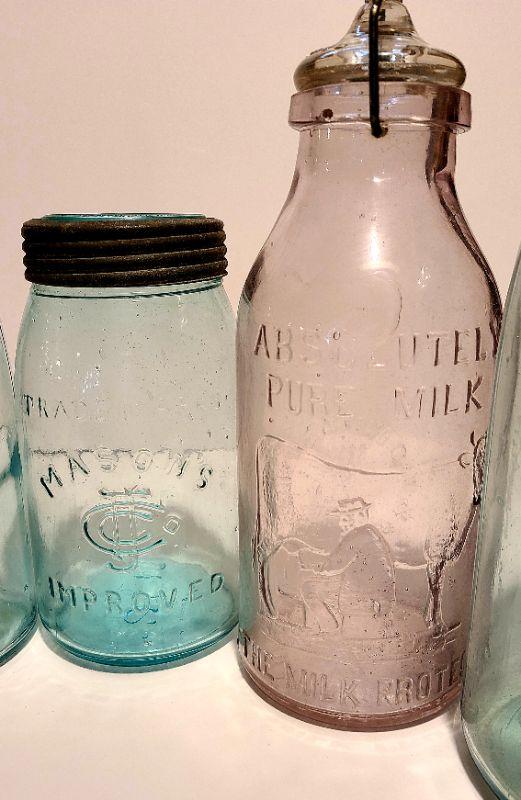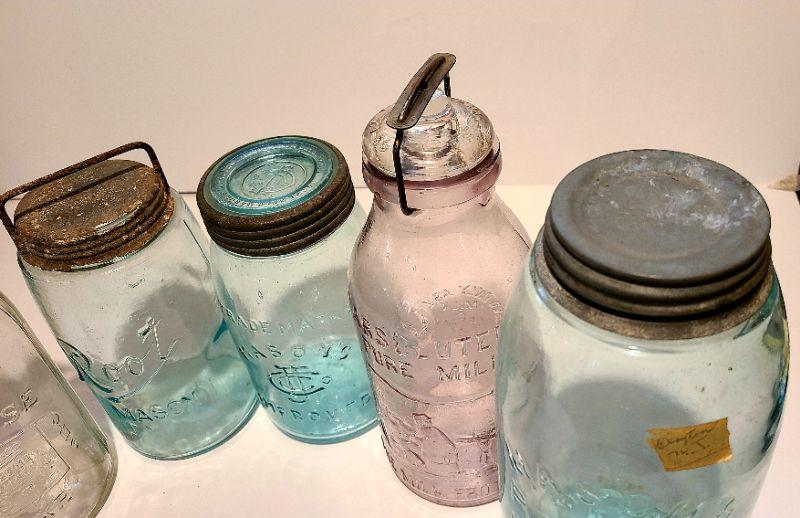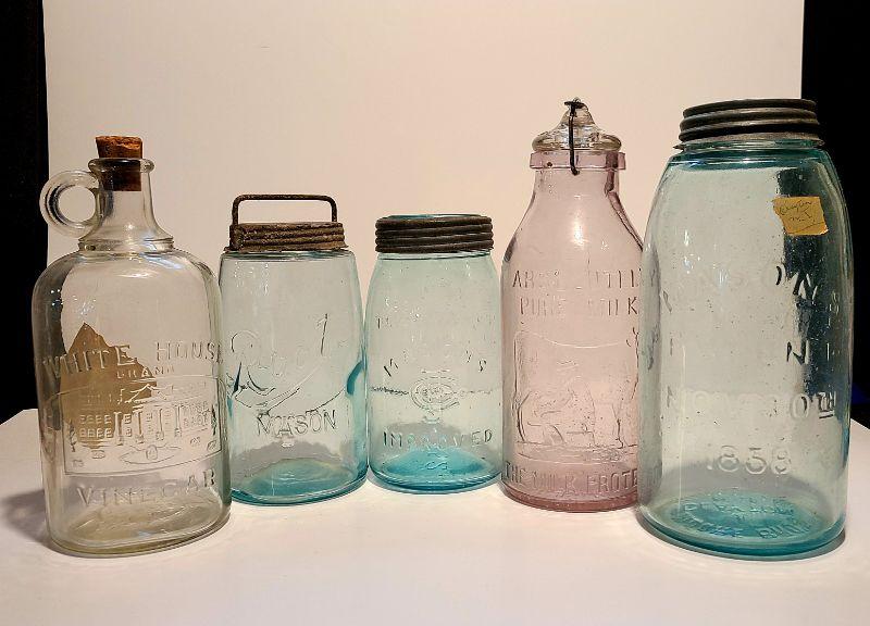 Lot 190A: Antique Dairy Bottles, Root Masons, Clayton NJ Mason Jars White House and More