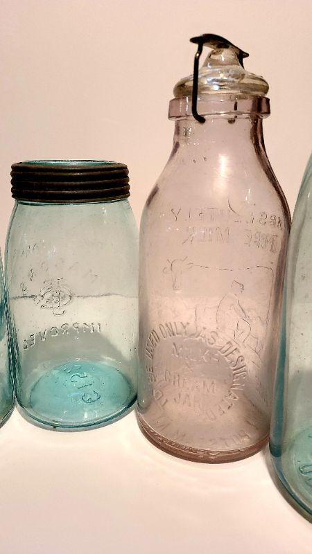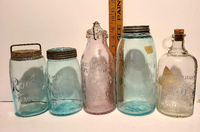 Lot 190A:  Antique Dairy Bottles, Root Masons, Clayton NJ Mason Jars White House and More