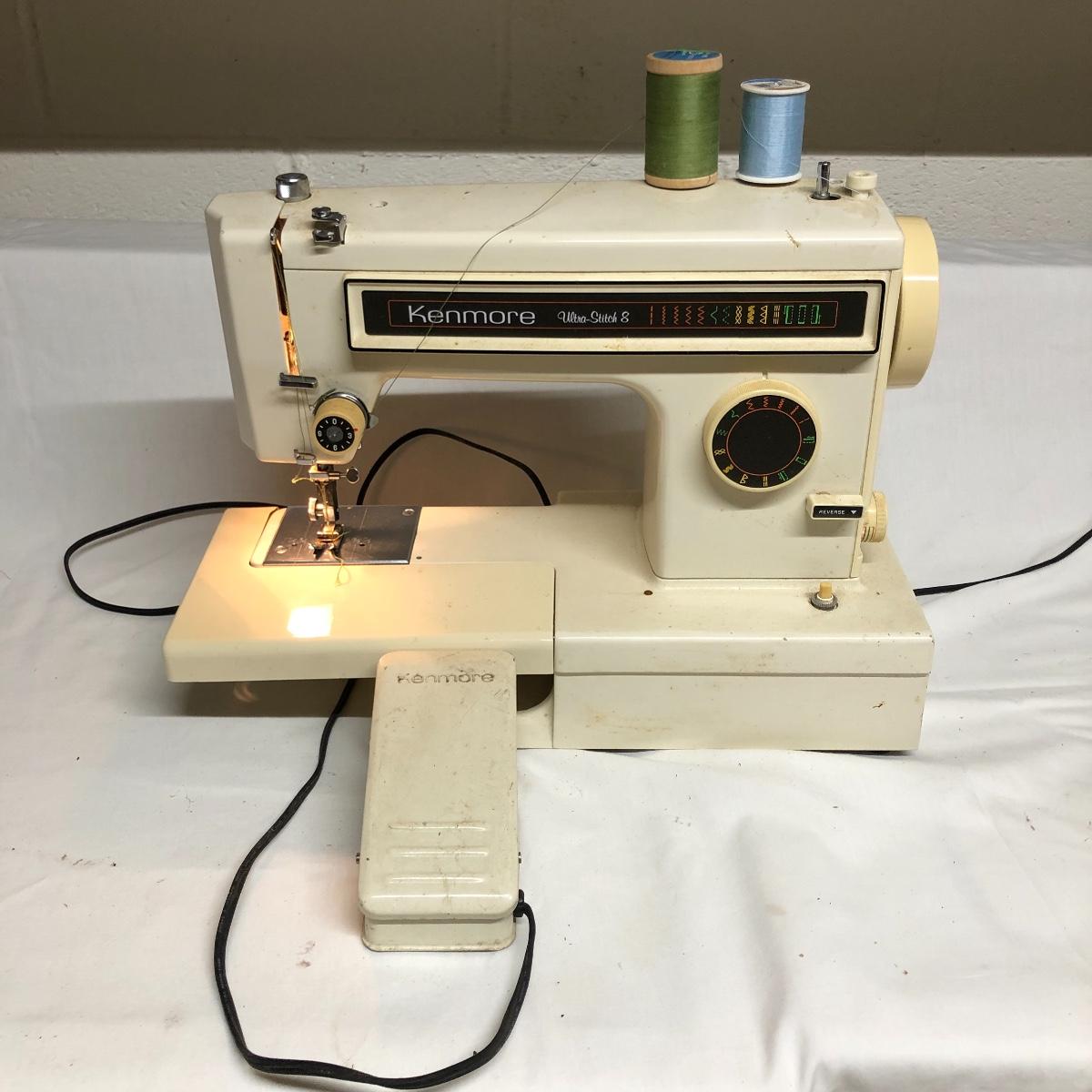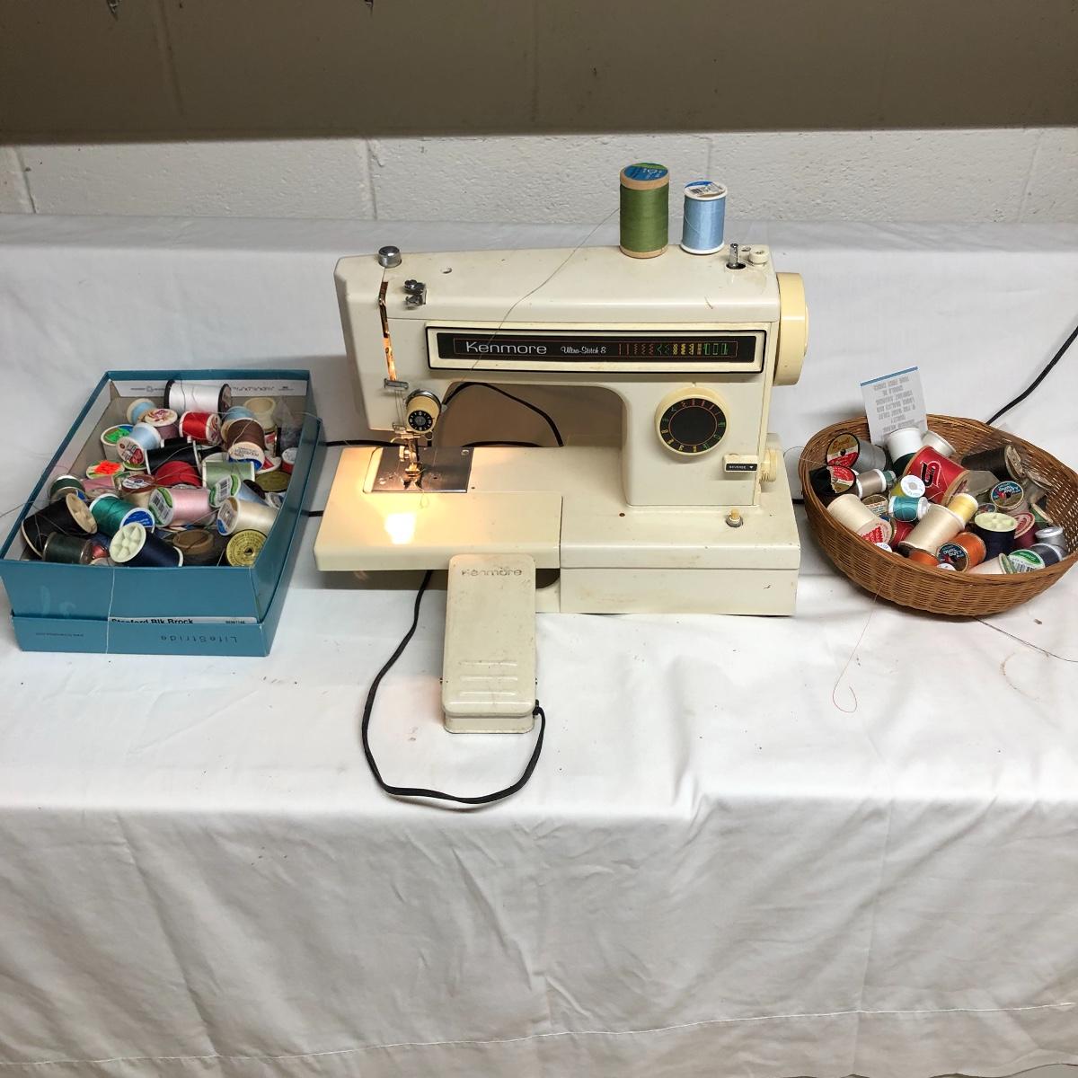 Go old school with this Kenmore model# 1581345381 mechanical sewing machine. Also includes a basket and box of a assortment of thread in many colors. Sewing machine worked when tested.