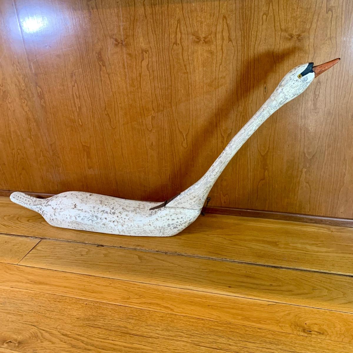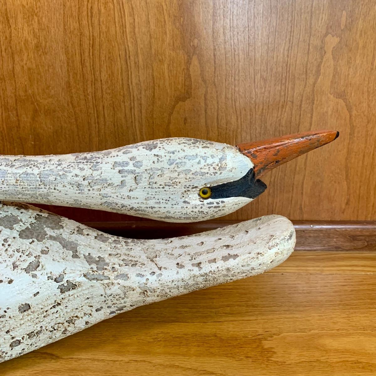 LOT 190 L: Large Vintage Swan Decoy w/Hinged Neck & Nameplate: Capt. Vernon Bryant (Maryland artisan)