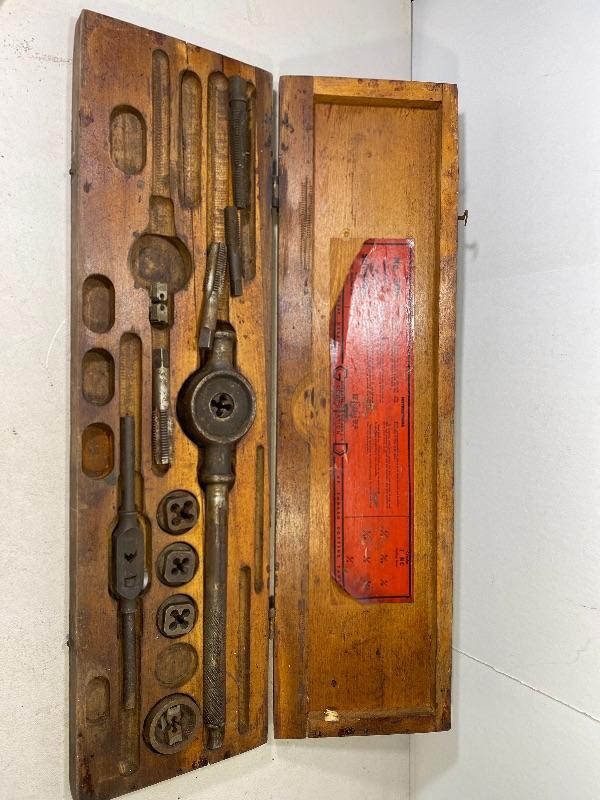 Lot# 190 Little Giant Jr. Tap and Die Set Wood Box Incomplete Greenfield Tap and Die Massachusetts