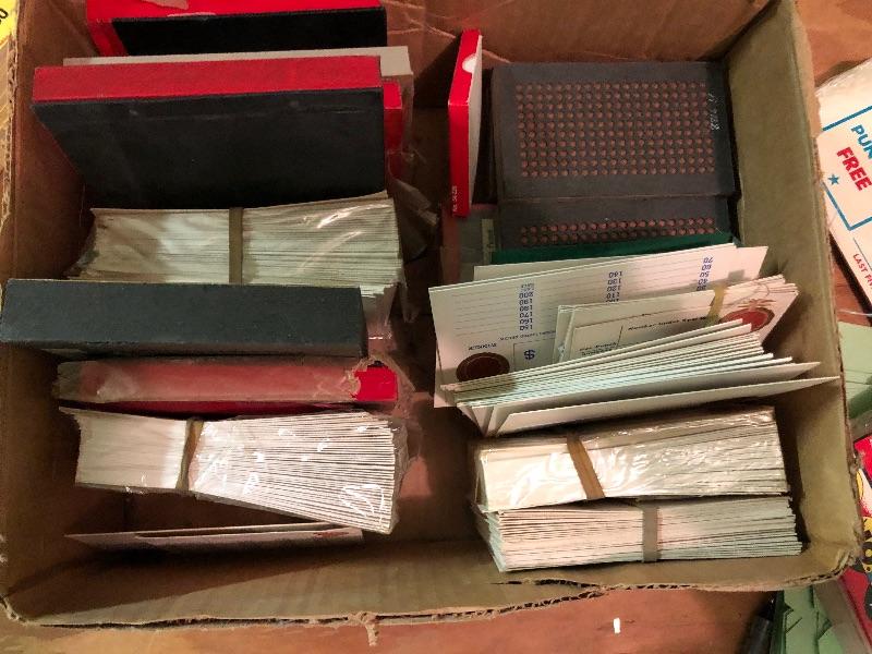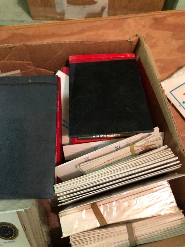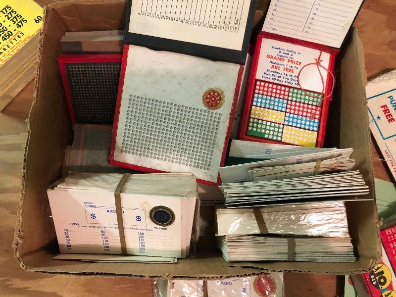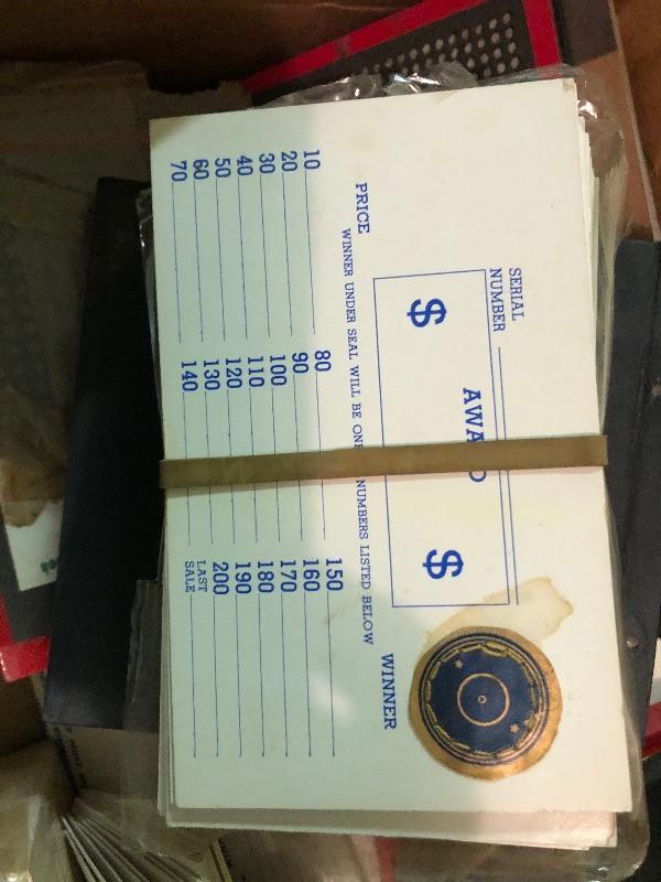 Mixed box of boards and display signage, award cards: Vintage used condition