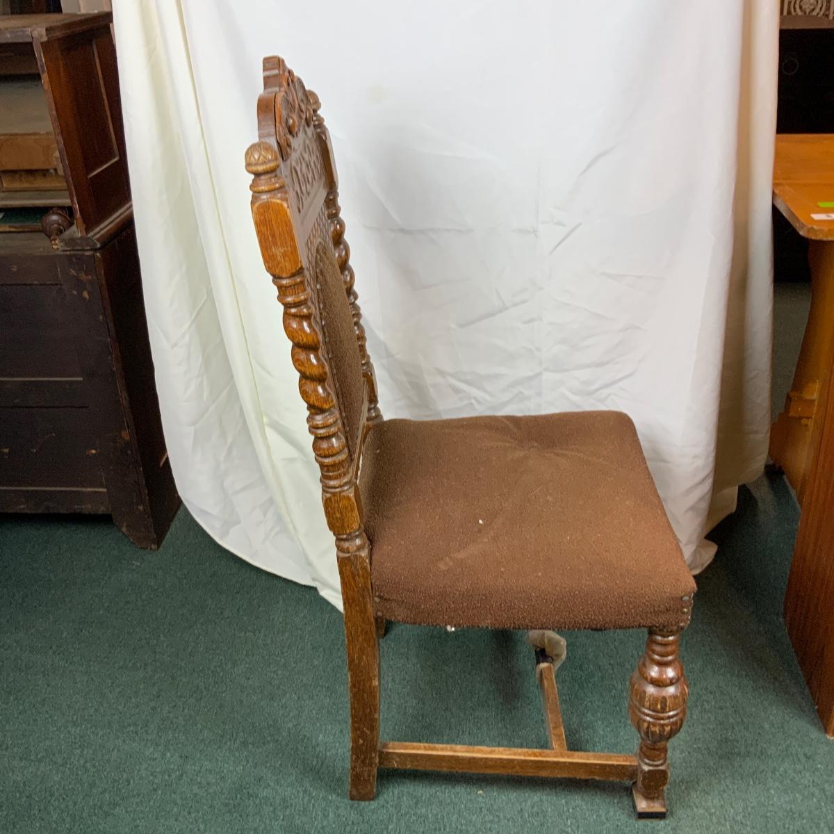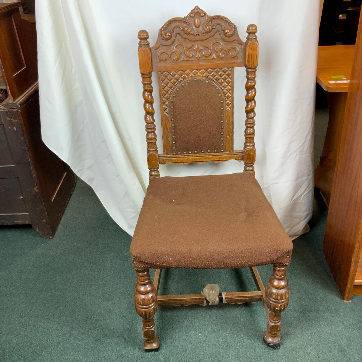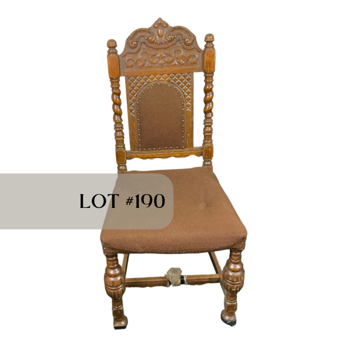 Single Tudor Dining Chair. Solid and well-made. Needs new cushion and upholstery. //::\\ Please see photos for details and condition. No attempt has been made to hide any imperfections. All items listed in this auction are warehouse items, and need to be cleaned. A majority of the items need restoration as well. All items are sold AS IS and WITHOUT GUARANTEE. If you are uncertain about an item, DO NOT BID. Due to the nature of this online auction in-person inspection is HIGHLY recommended. All Sales are FINAL. Pick Up Times are FIRM. Please confirm with your own schedule that you can pick up in the scheduled times listed in the Terms and Conditions. Any questions please message the auctioneer. DO NOT Contact The Harp Gallery.
