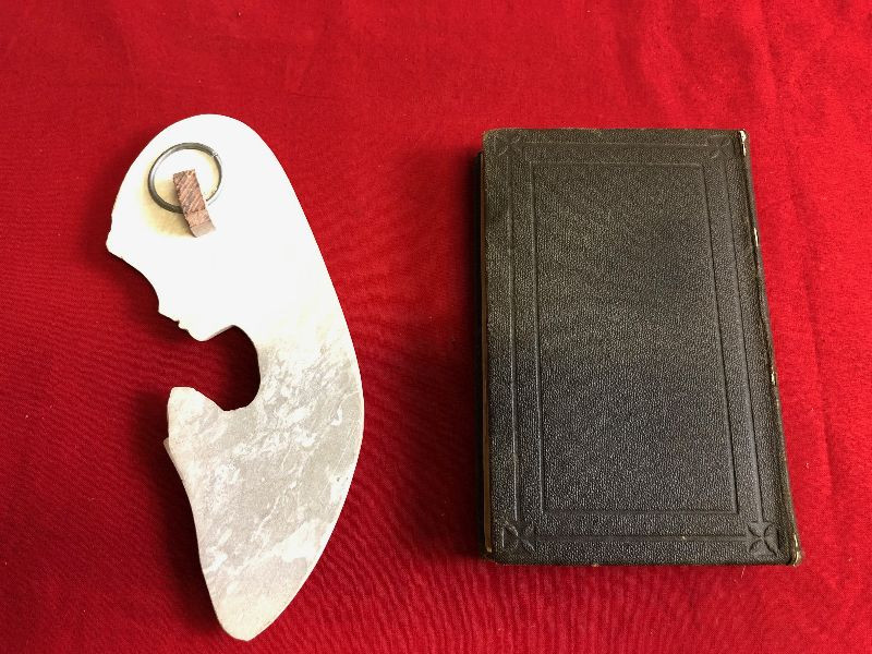 Soapstone carving and Very old Book 1892 Printing - can't put price on