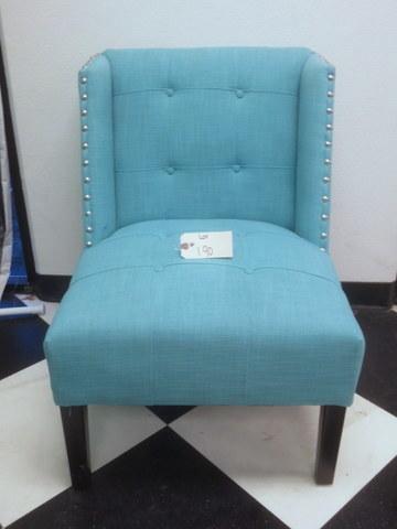 Lot 190 - Upholstered Turquoise Tuffed Chair with Nail Head Trim