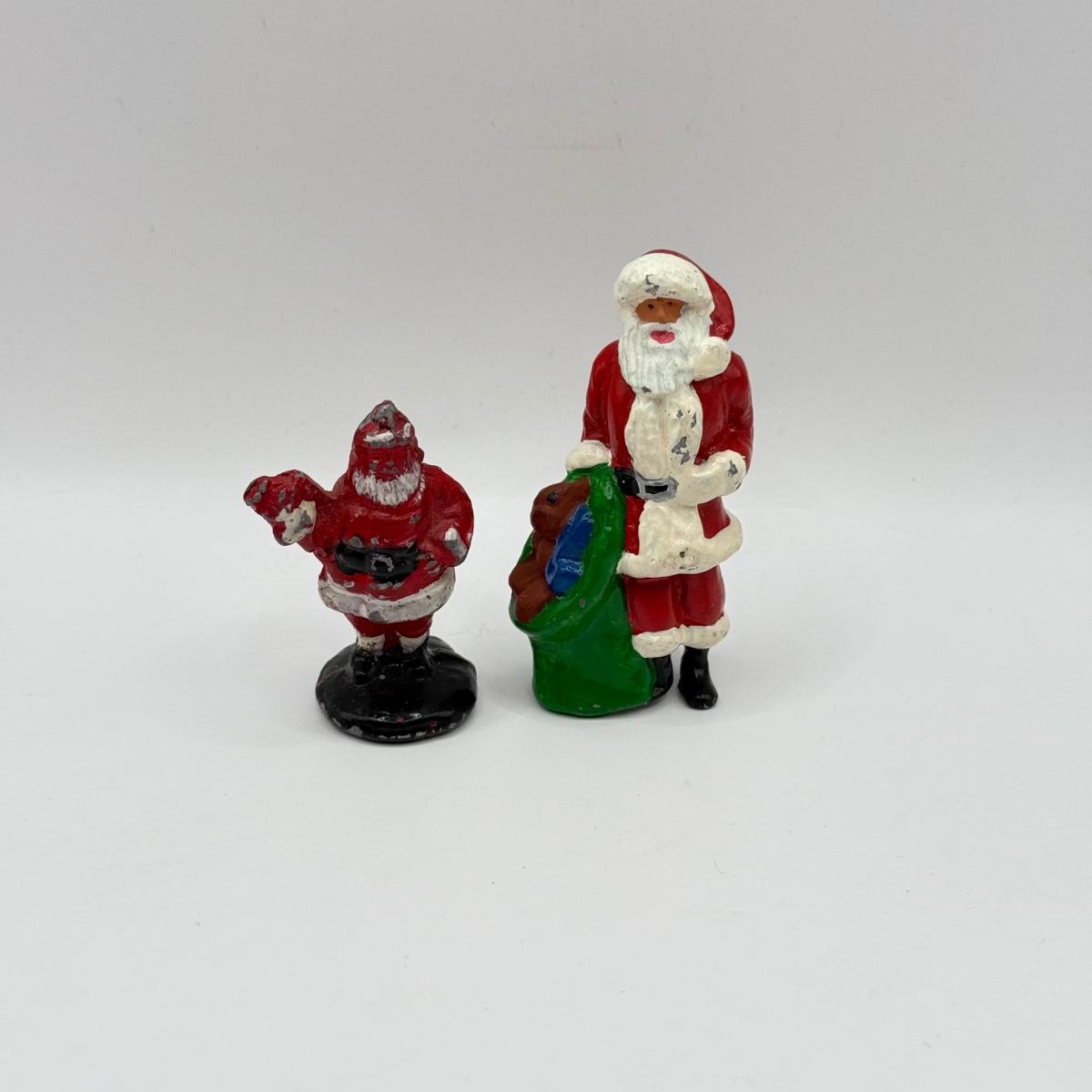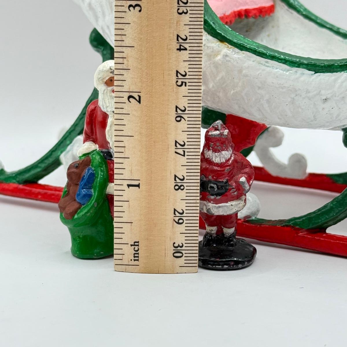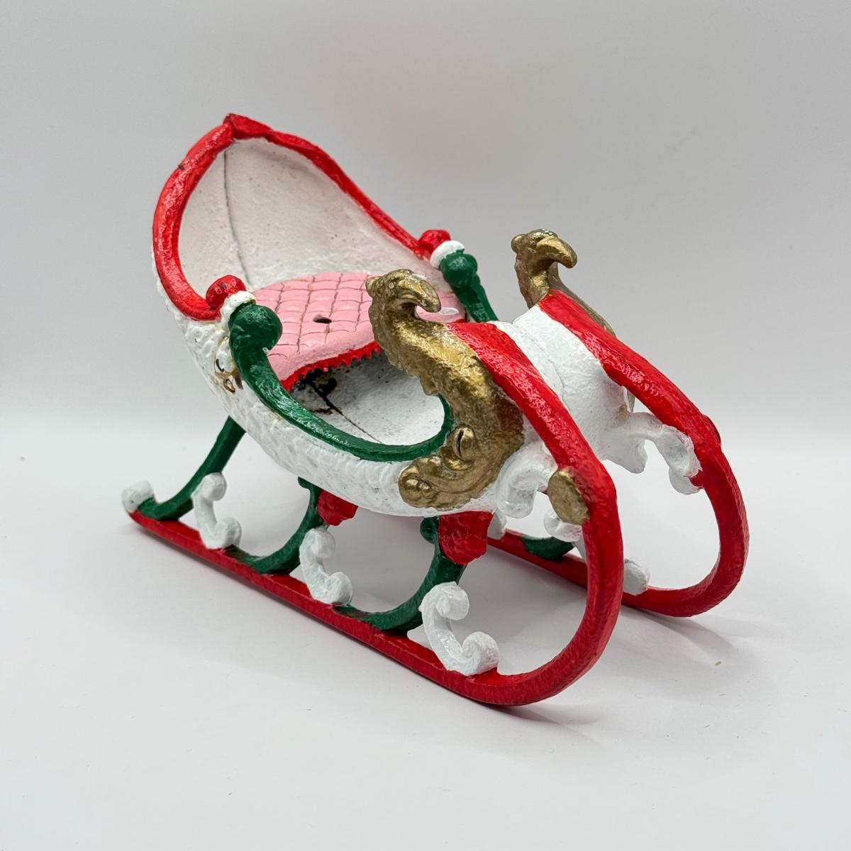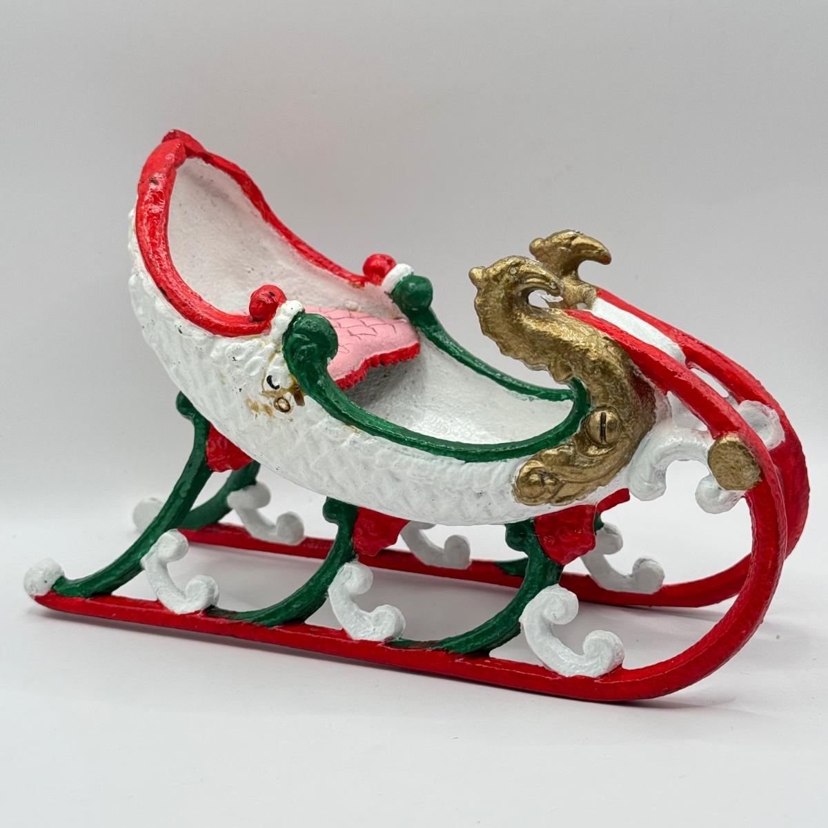 LOT 190L: Vintage Cast Iron Painted Sled & Miniature Metal Santas