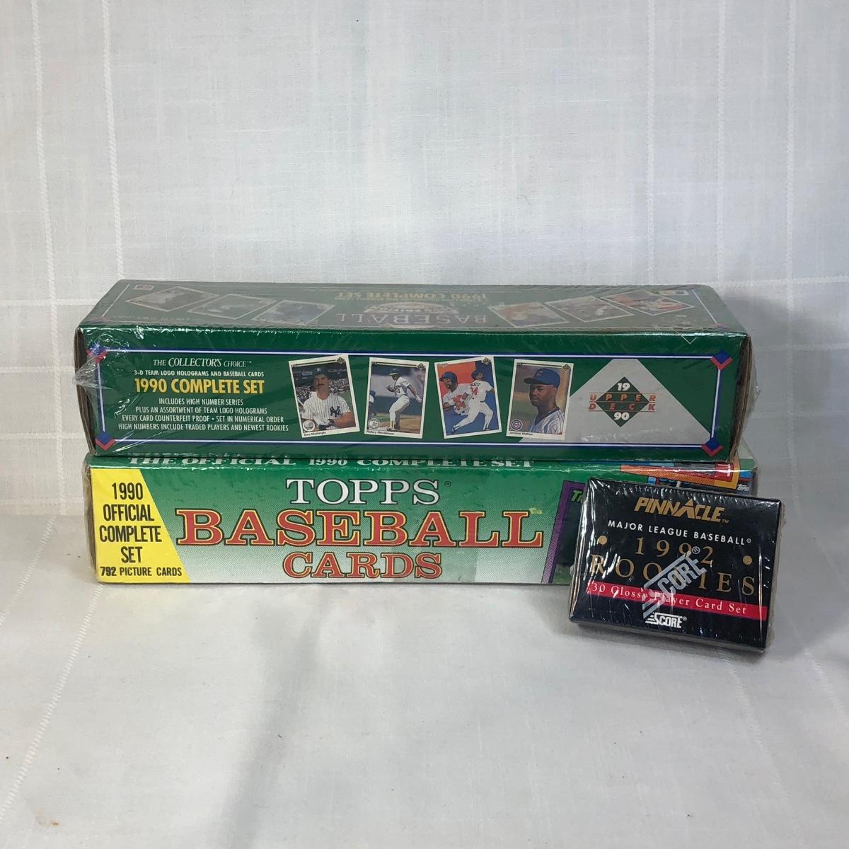 LOT 190M: Sealed Baseball CCard Sets - Topps 1990 Official Complete Set, Upper Deck 1990 Complete Set & Pinnacle MLB 1992 Rookies 30 Card Set