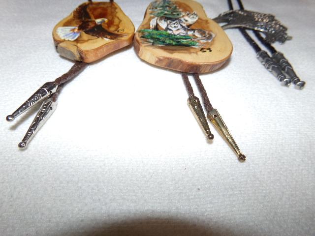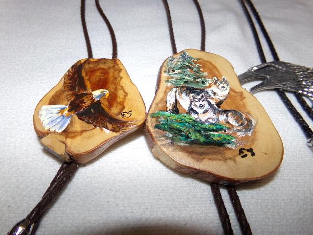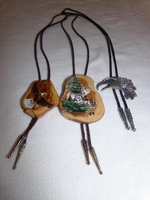 TWO HAVE ANTLER BACKINGS WITH DETAILED PAINTINGS & EAGLE HEAD