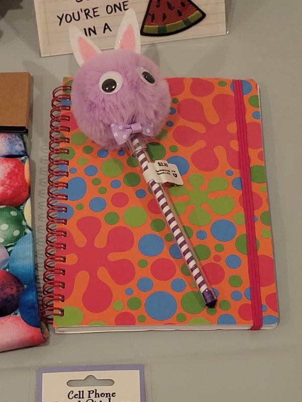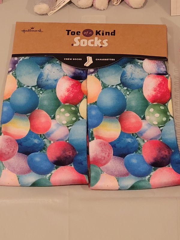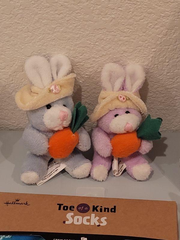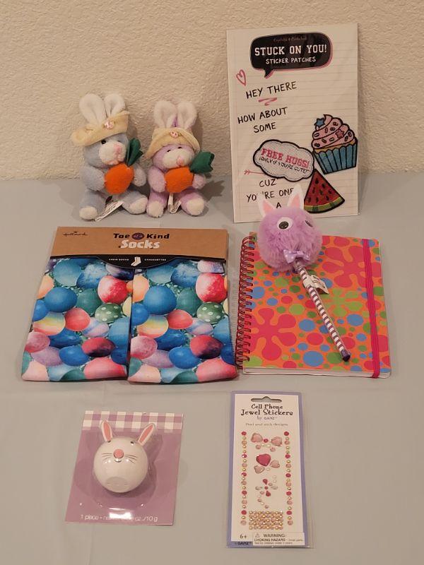 Lot 191: Easter Goodies- Socks, Lip Gloss, Notebook and Pen, Stick On Patches and (2) Small Bunnies