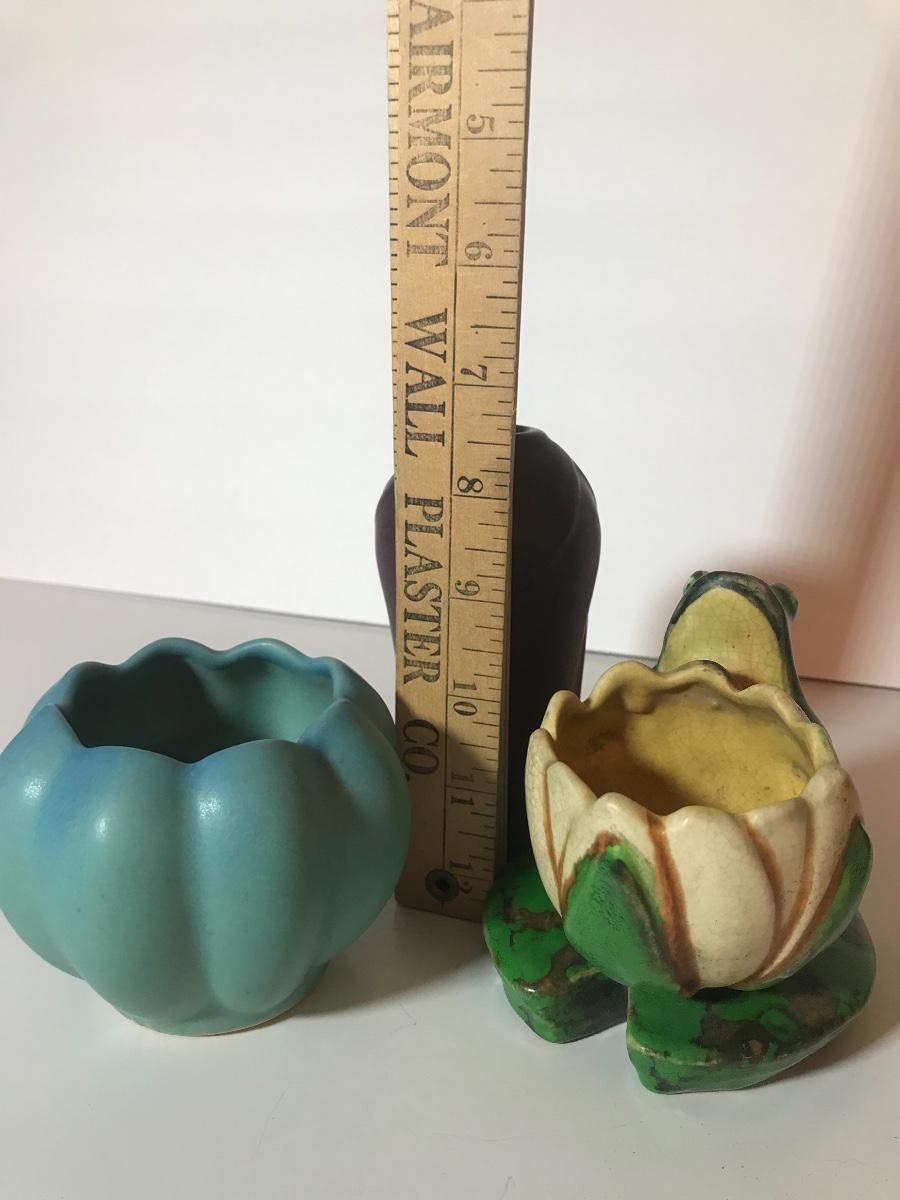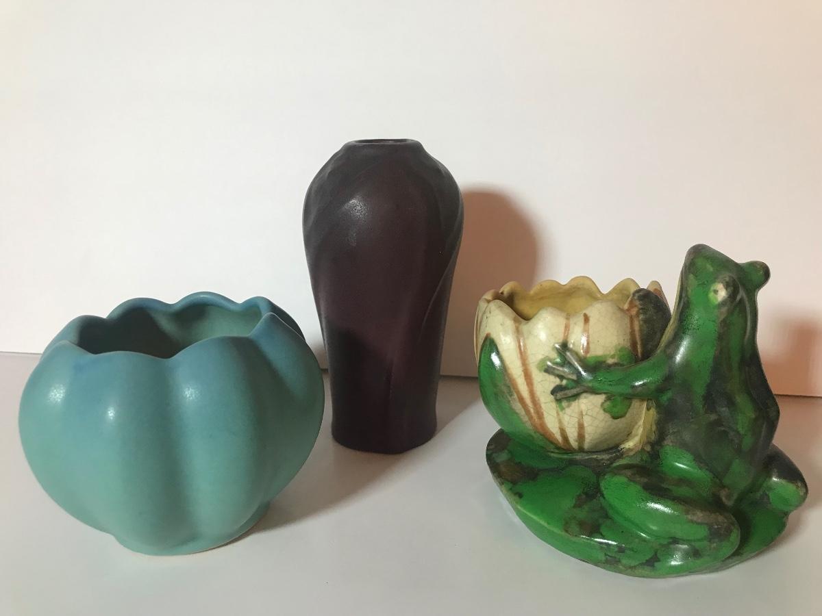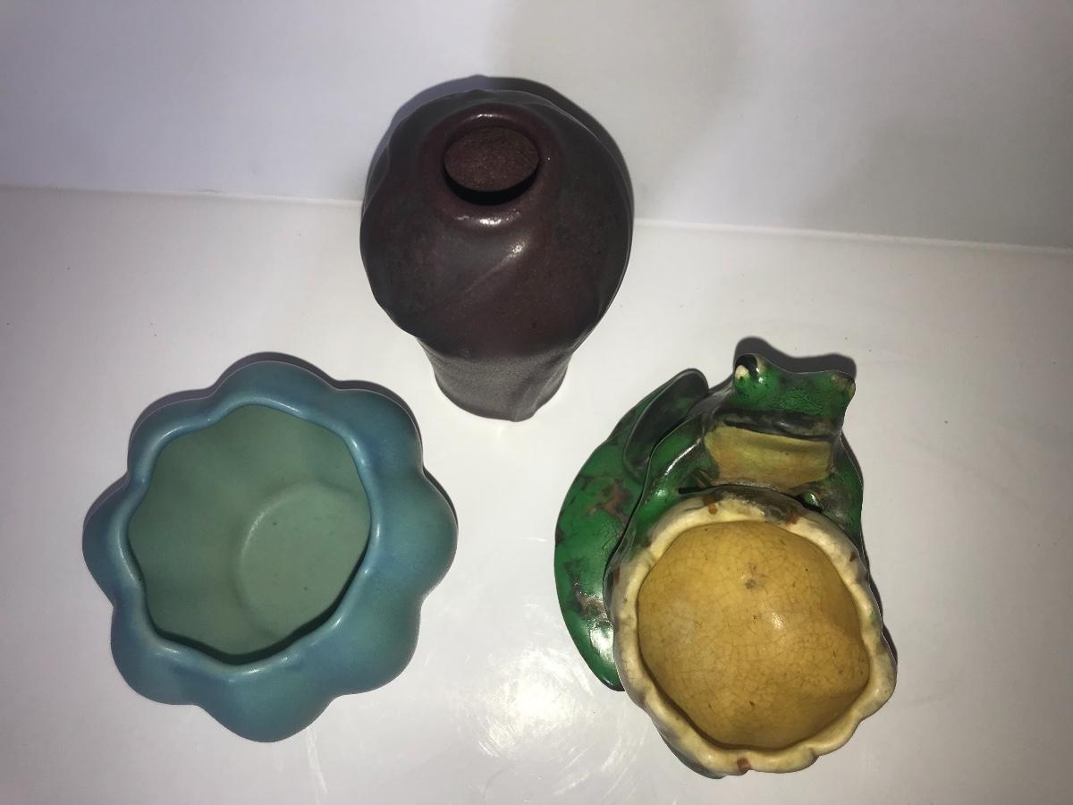 Beautiful pottery vase and bowl by Van Briggle, and a frog planter by Weller Pottery. Please see all pictures as they are the best representation of the items. The pictures show condition, measurements if taken, and what is included in the lot. Due to the large amount that we photograph and the time frame, we are not always able to take measurements. All items unless noted, are pre-owned and have been used. If you purchased furniture, you must bring help. We do not allow one person to carry large furniture out on their own. Bring help, tools and a truck for the safety of our client’s homes, and your personal safety. Company policy. Thank you.