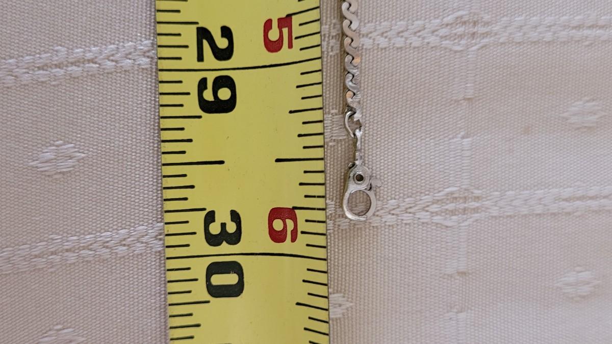 Express chain is 36.5" long. Monet chain is 29.75" long.