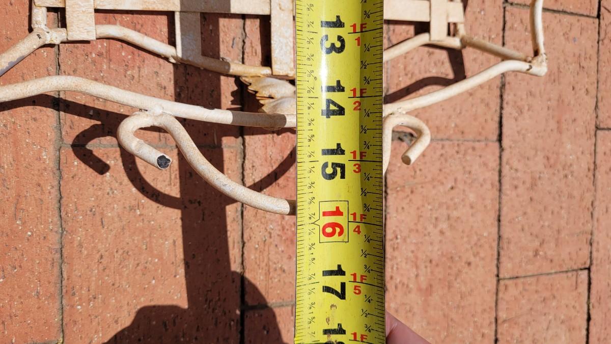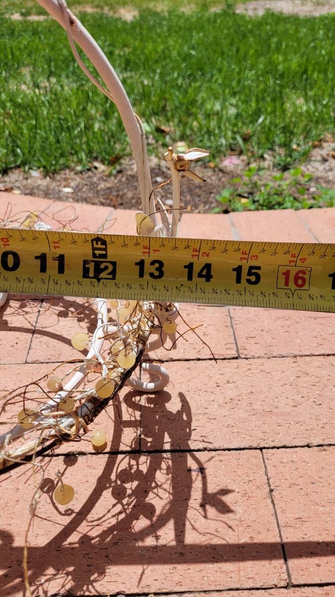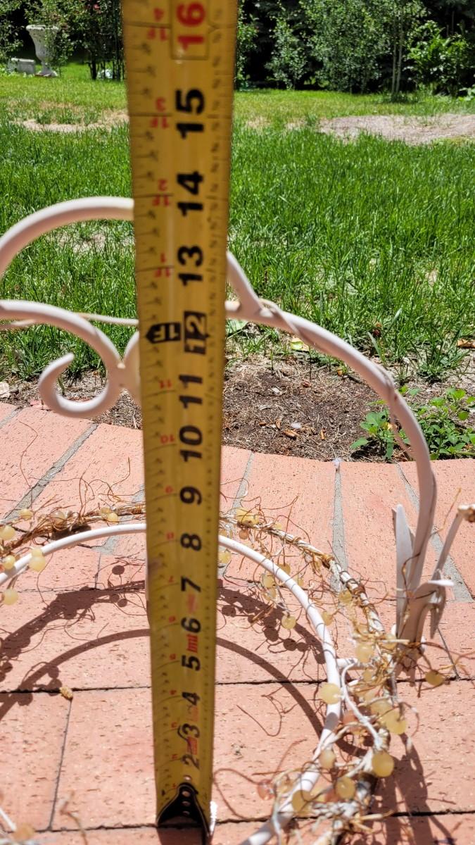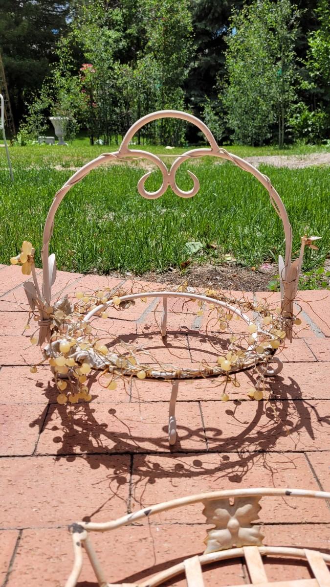 Plant stand is missing flower petal beads on one side. Both pieces are made from sturdy metal.