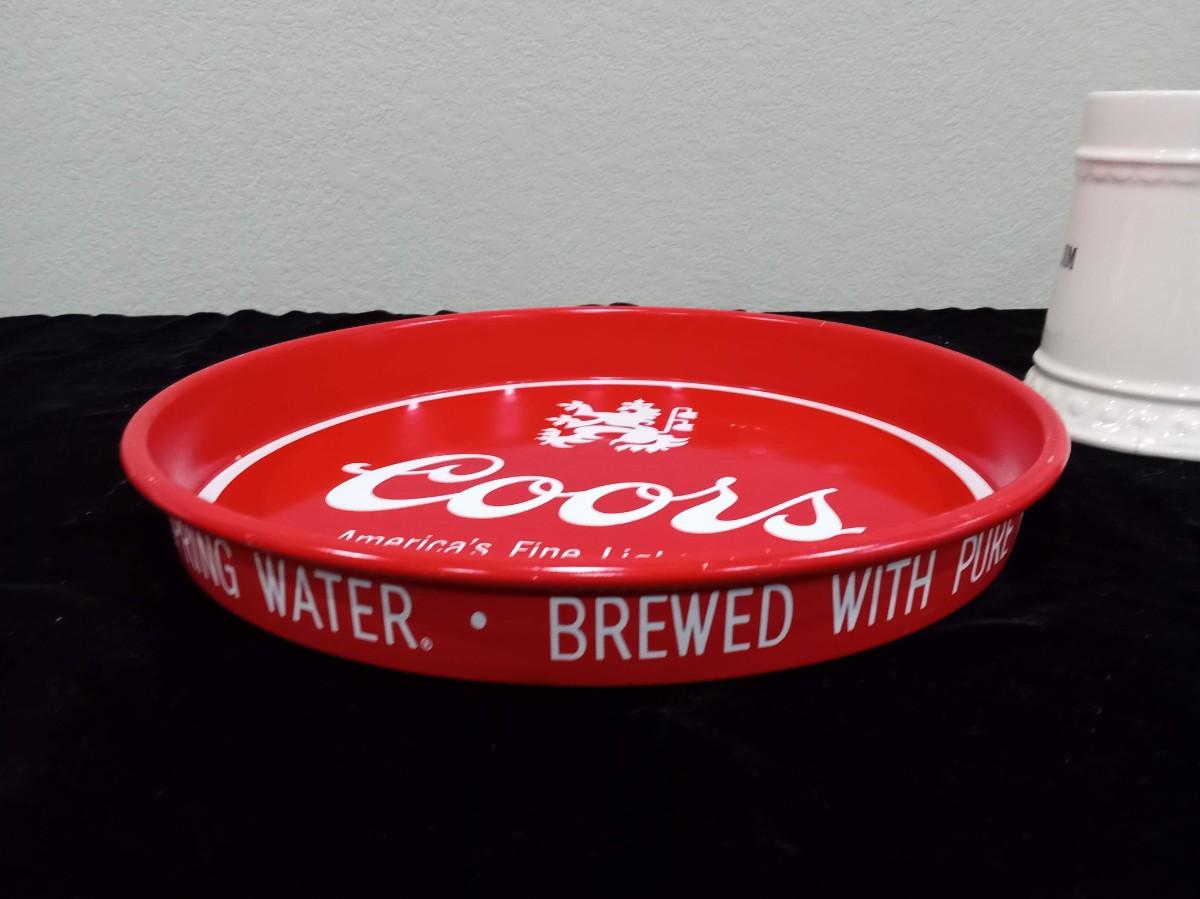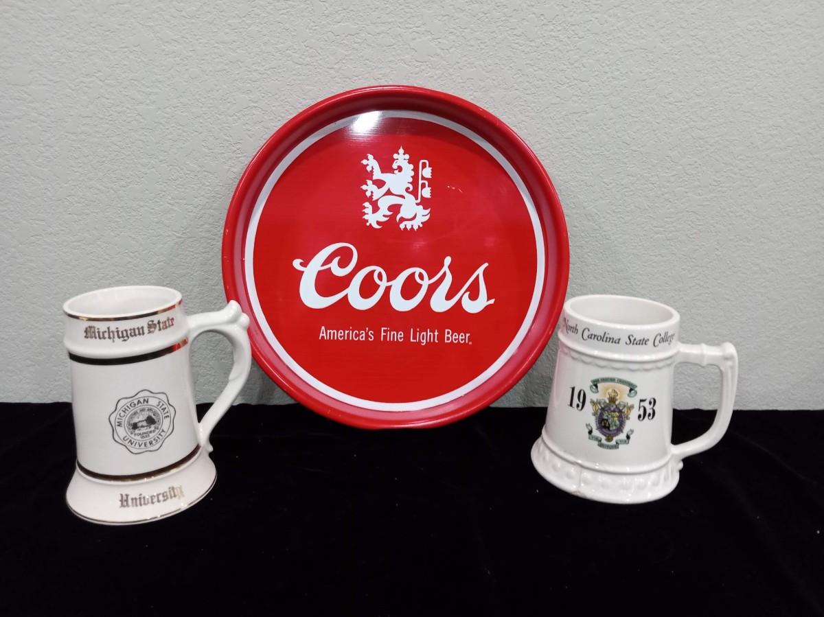 LOT 191 COORS BEER SERVING TRAY AND 2 COLLEGE BEER MUGS