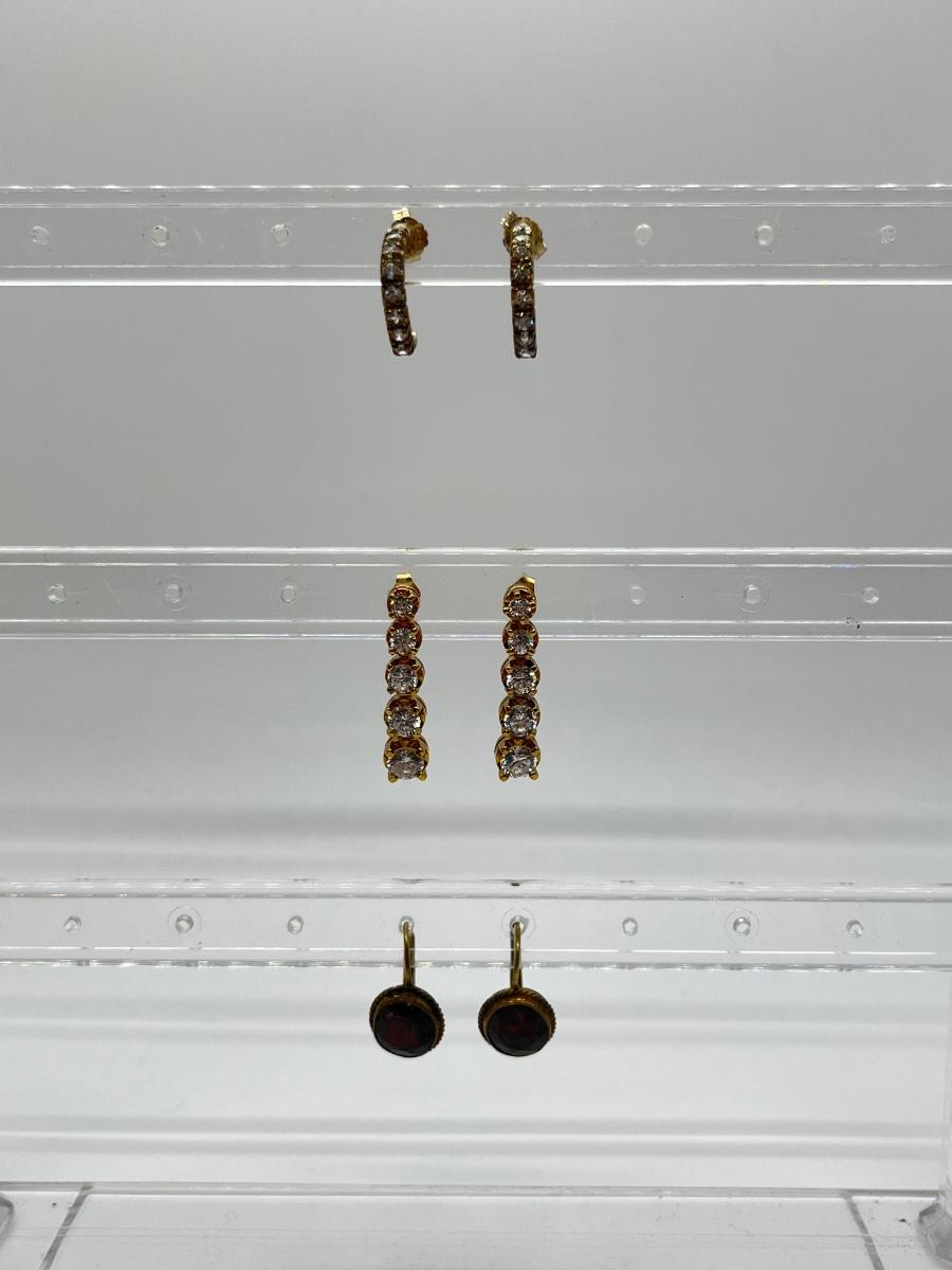 LOT 191: 925 CZ Sterling Drop Earrings + Half Hoops + Garnet Earrings