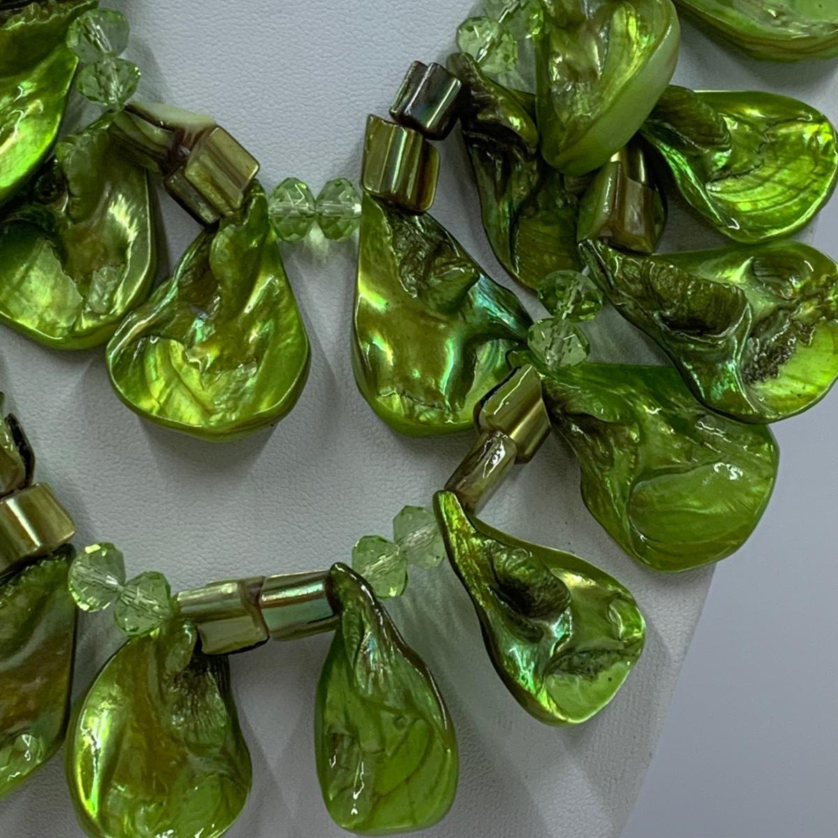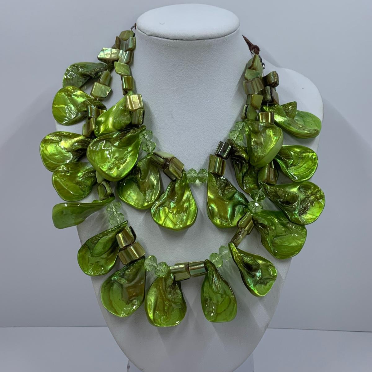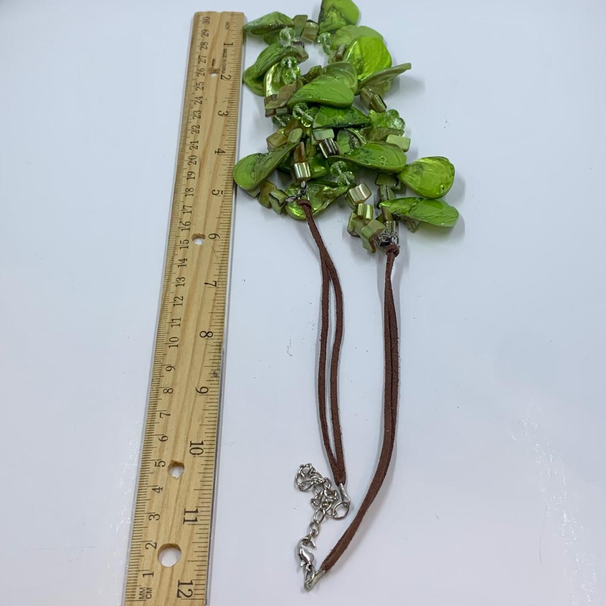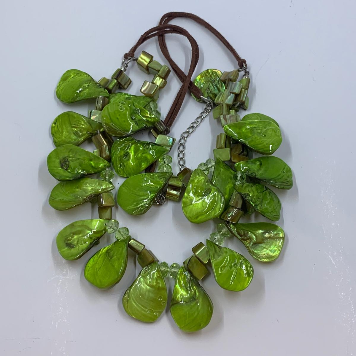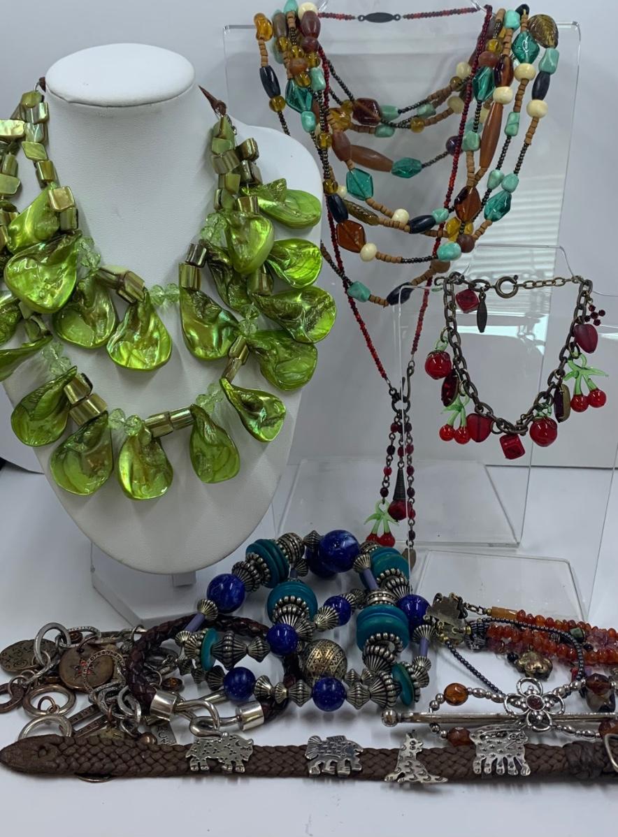 Lot 191: Fashion Jewelry Collection & More: Sterling Silver Charm, Beaded Bracelets & Necklaces, Unique Green/Lime Earthy Modern Boho Style Necklace