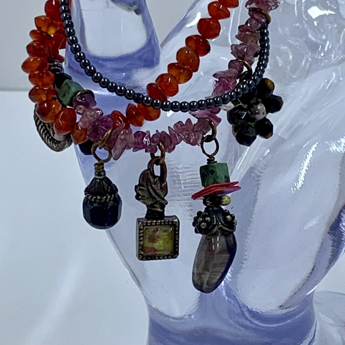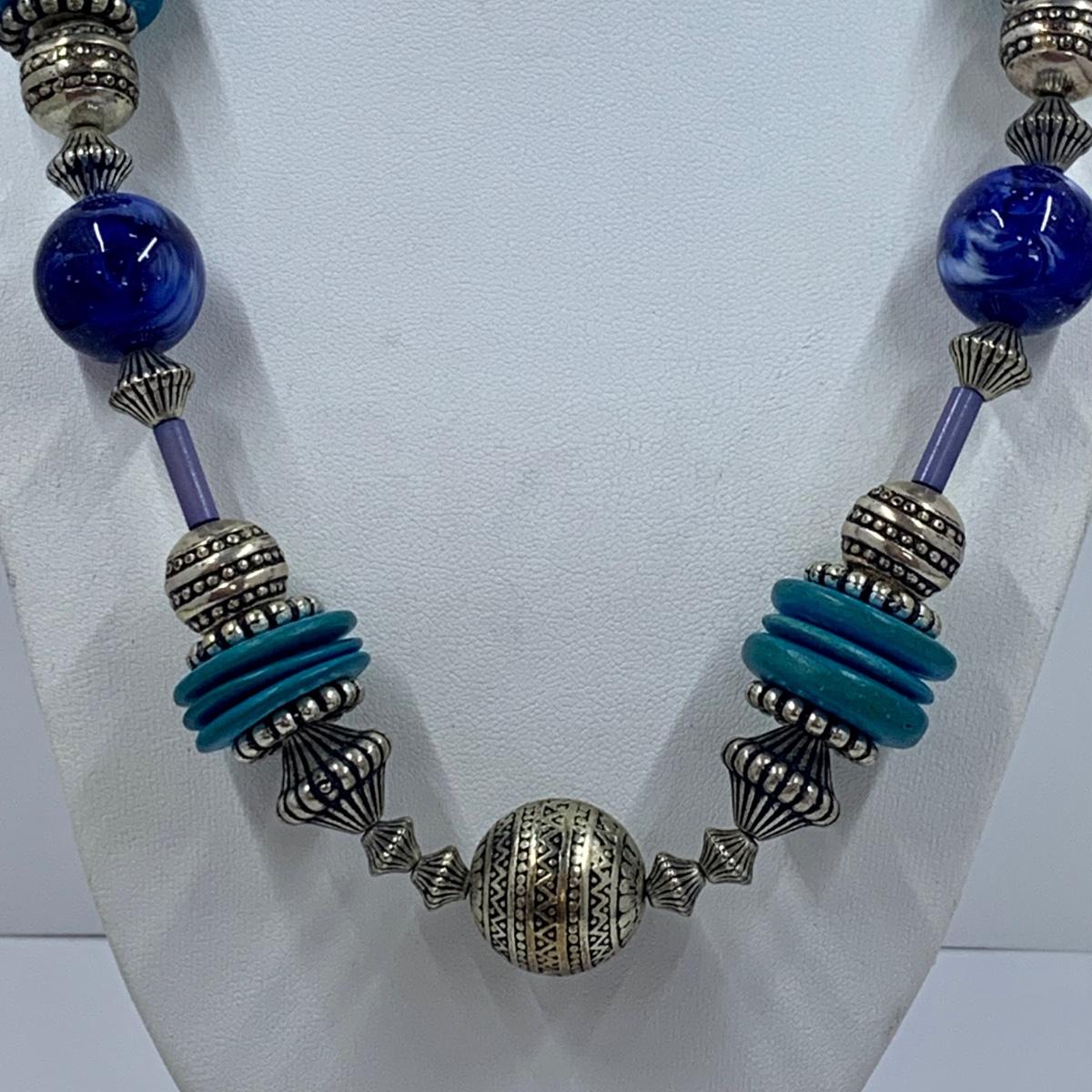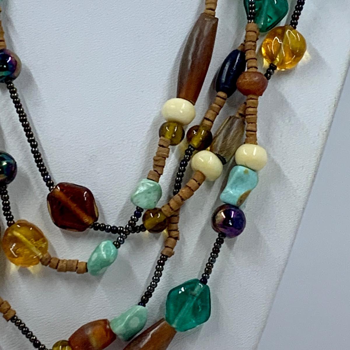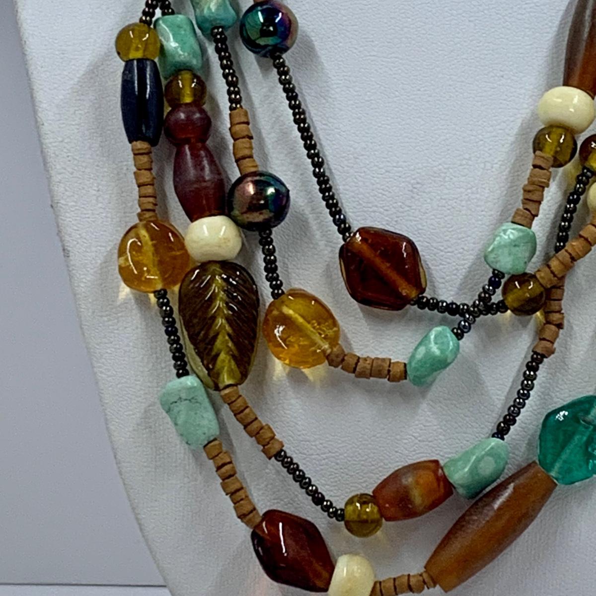 Lot 191: Fashion Jewelry Collection & More: Sterling Silver Charm, Beaded Bracelets & Necklaces, Unique Green/Lime Earthy Modern Boho Style Necklace