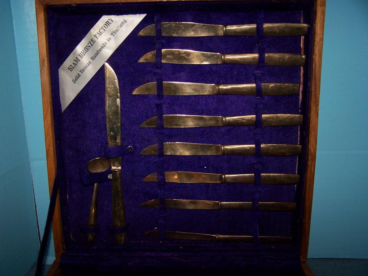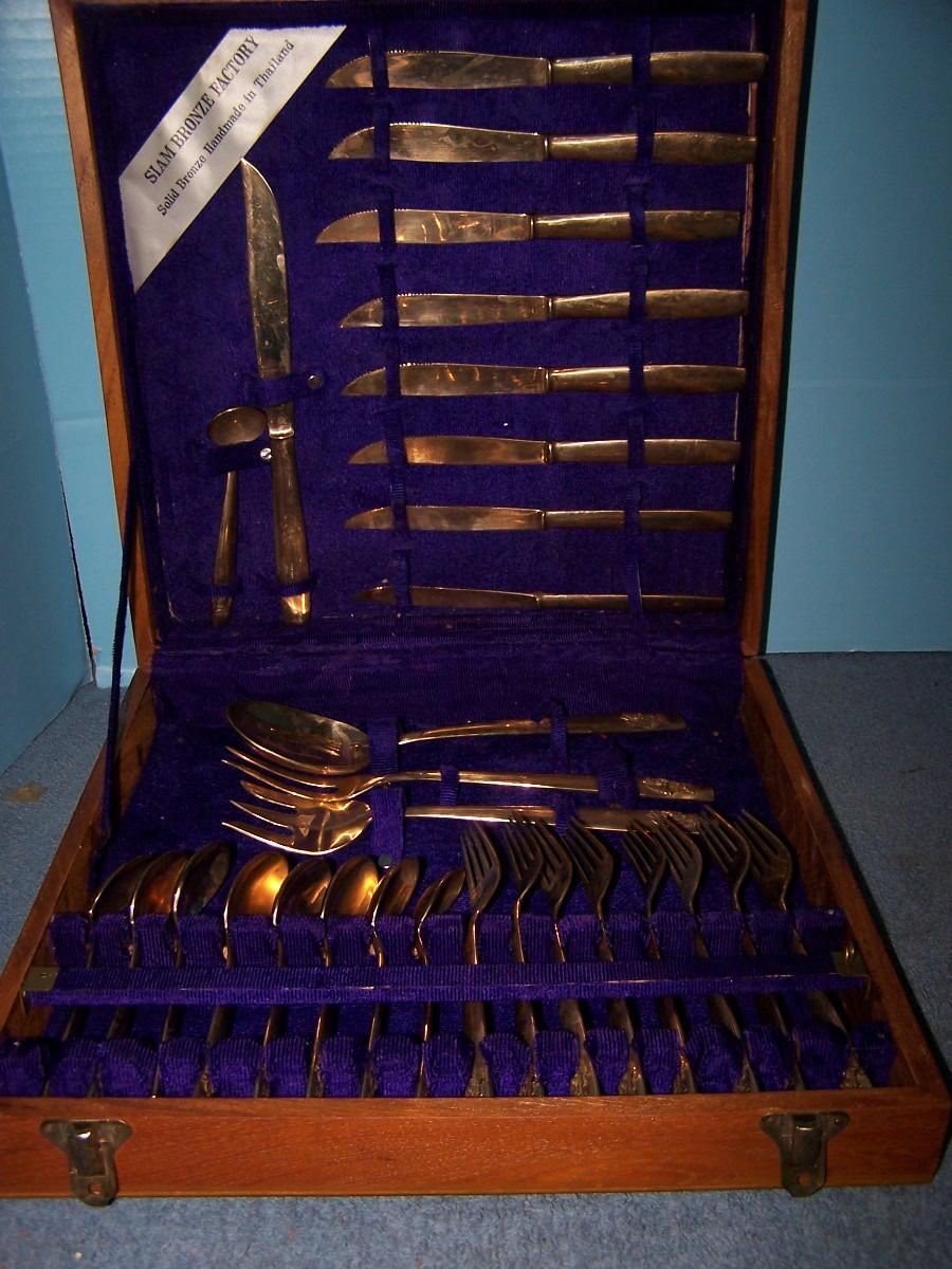 THIS IS A FAB VINTAGE MCM SIAM/THAILAND BRONZE FLATWARE SET!!! MARKED.. LIGHT WEAR..